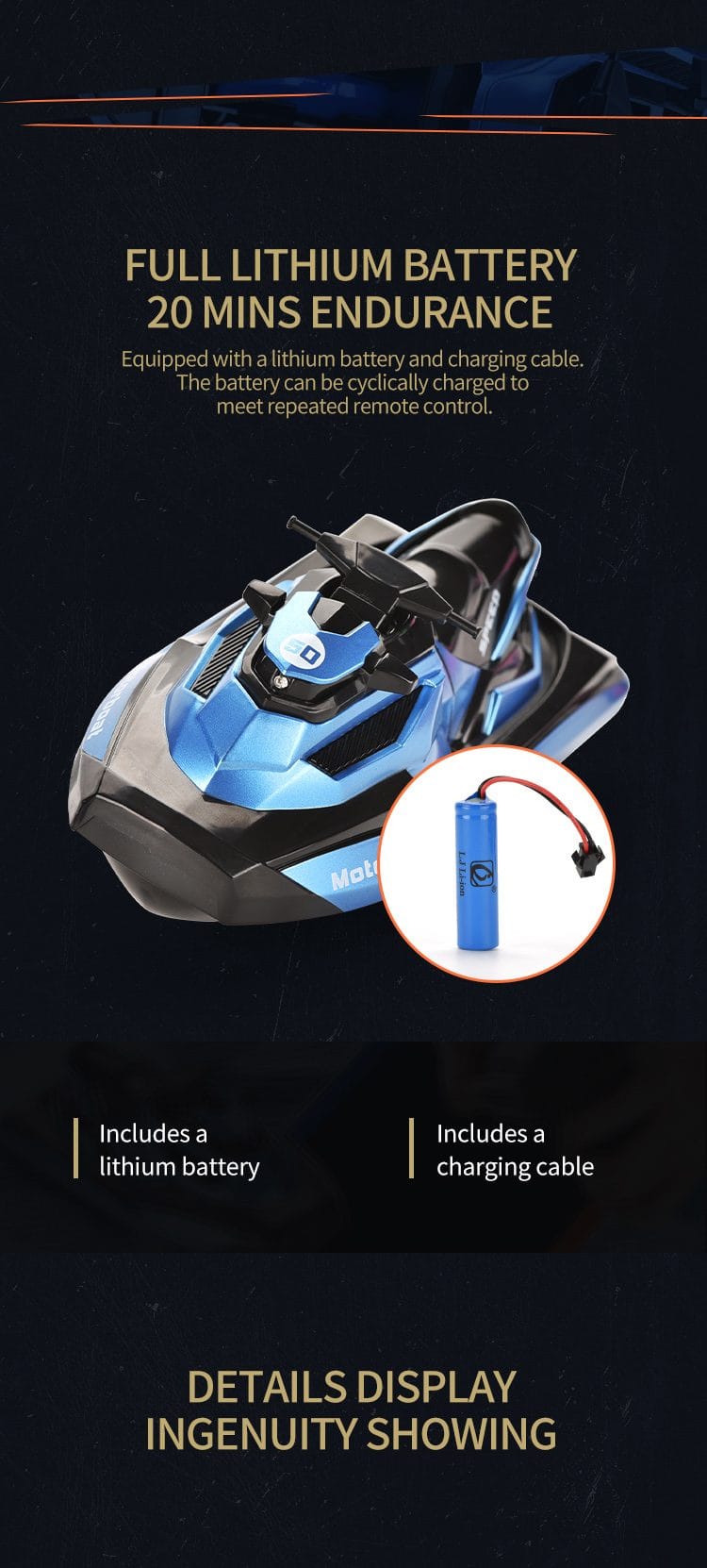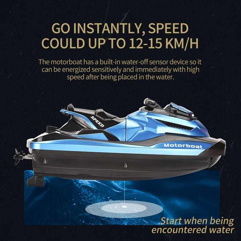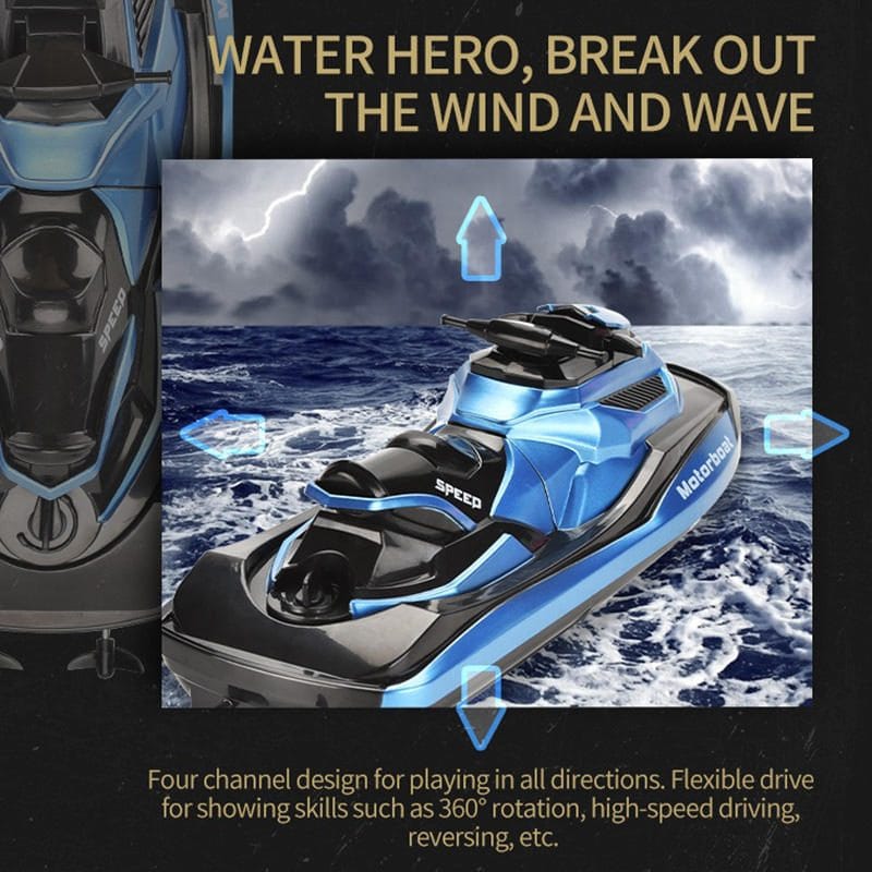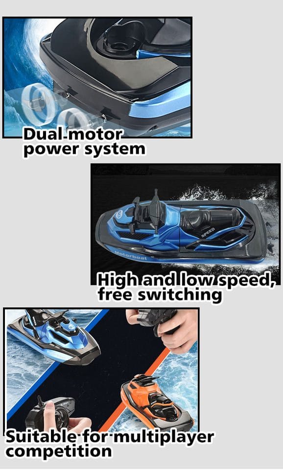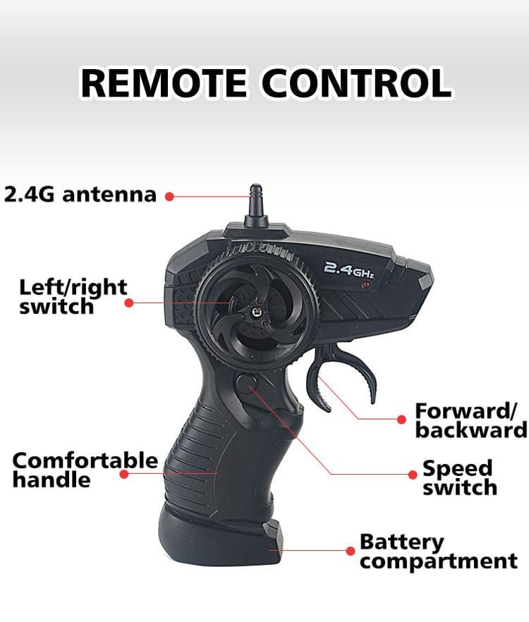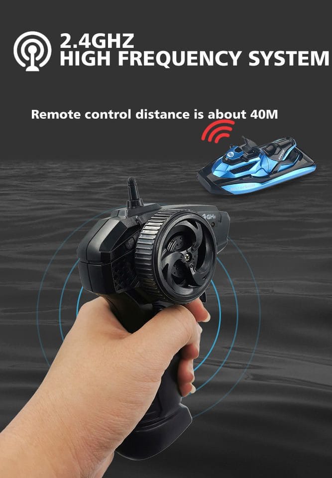 Barca este usor de controlat cu ajutorul telecomenzii moderne care functioneaza cu 2 baterii AA.