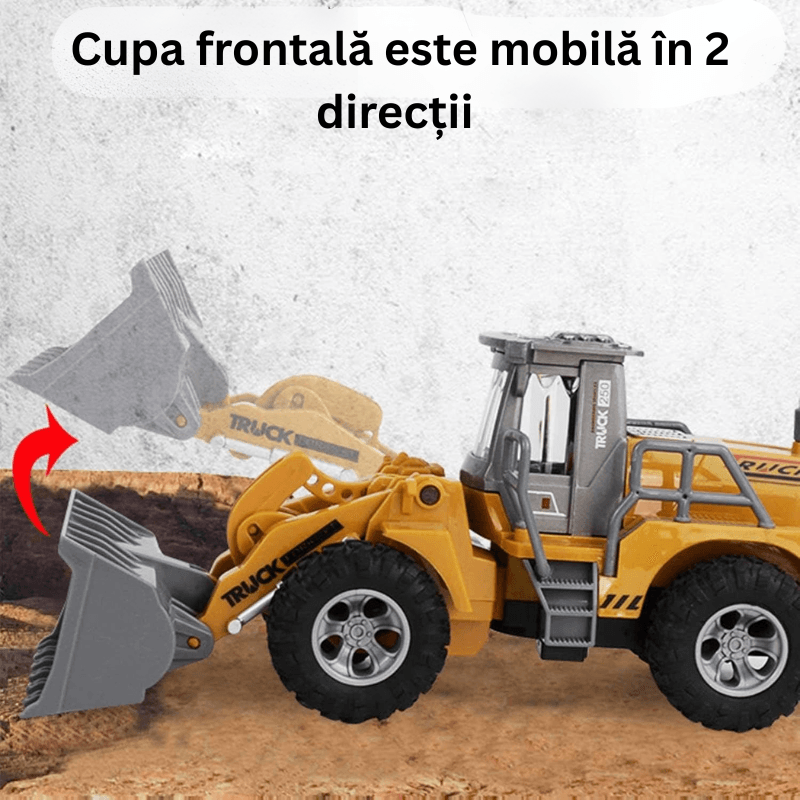 Buldoexcavator cu Telecomanda cu Incarcare Frontala RC, Lumini, Sunete si Cupa Mobila