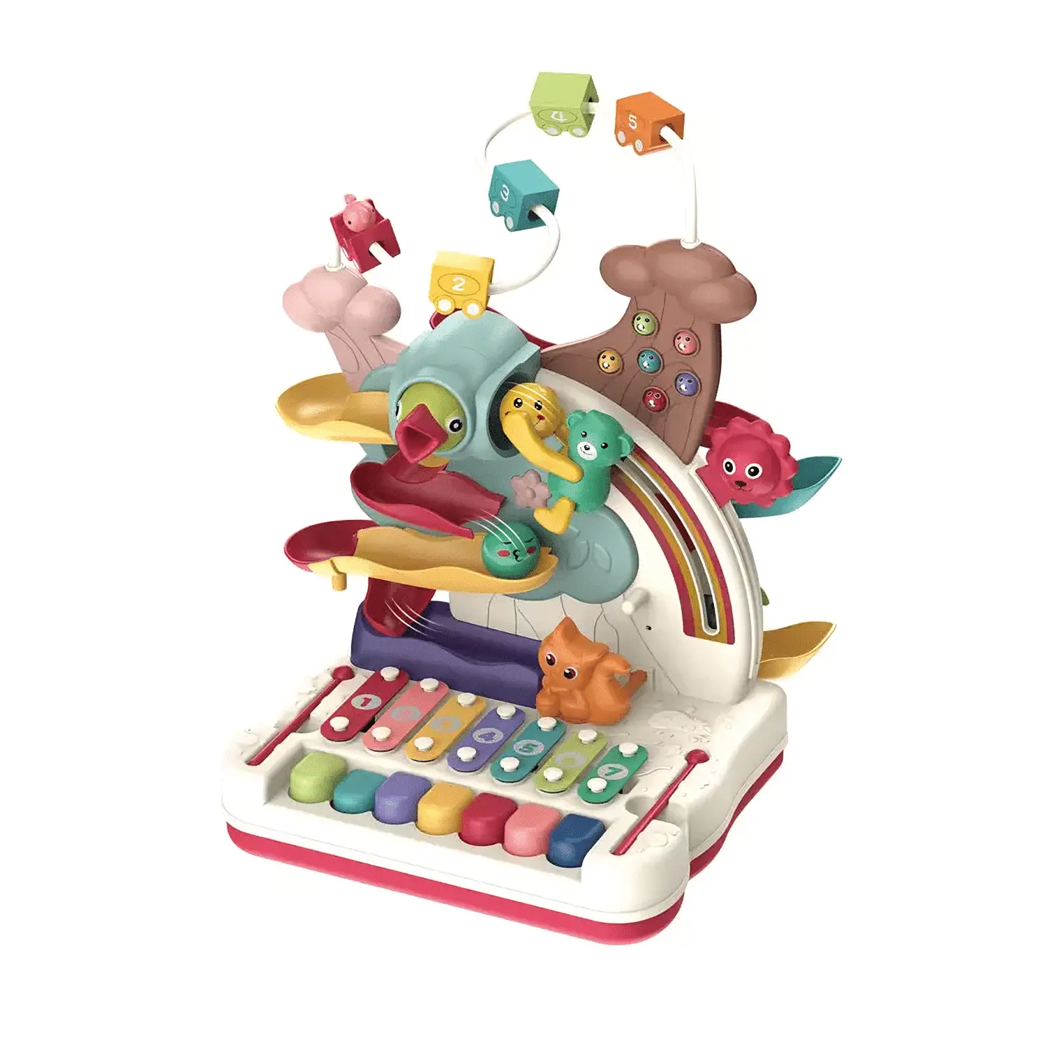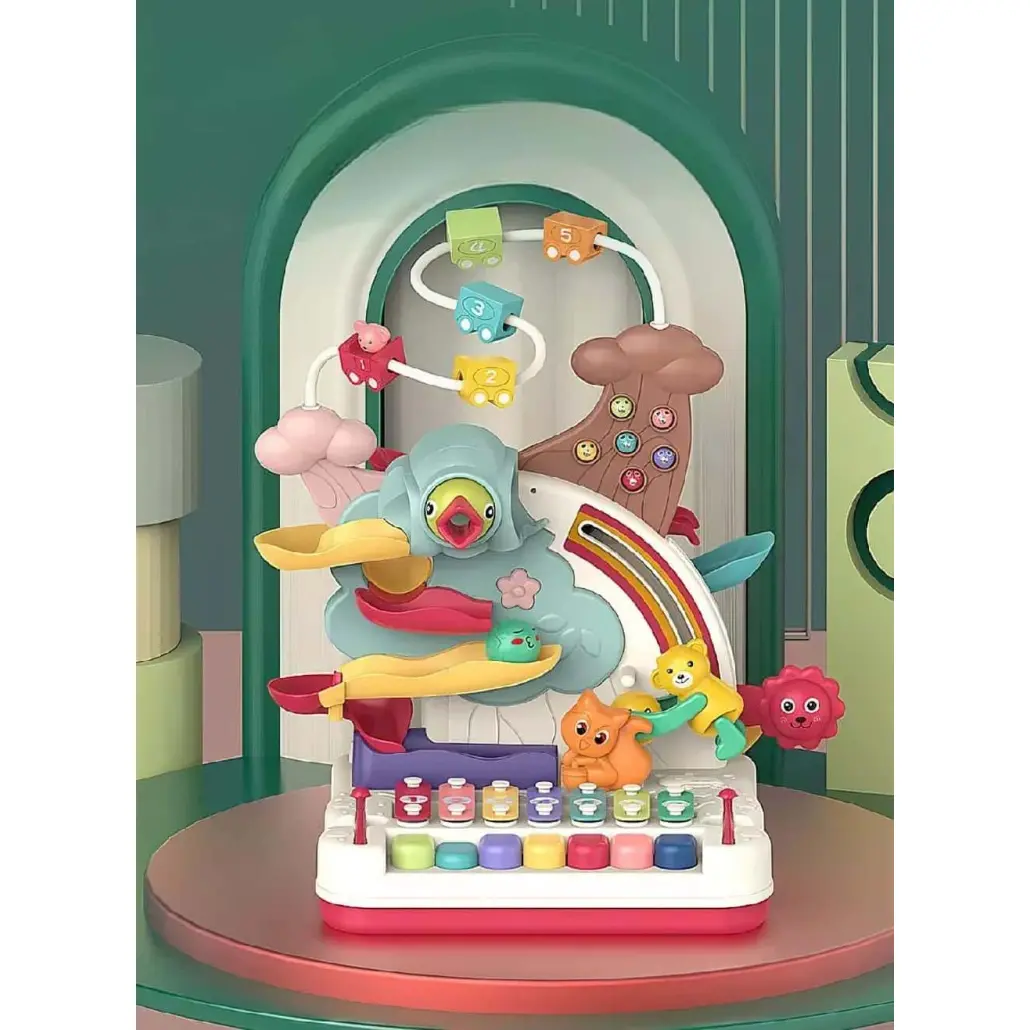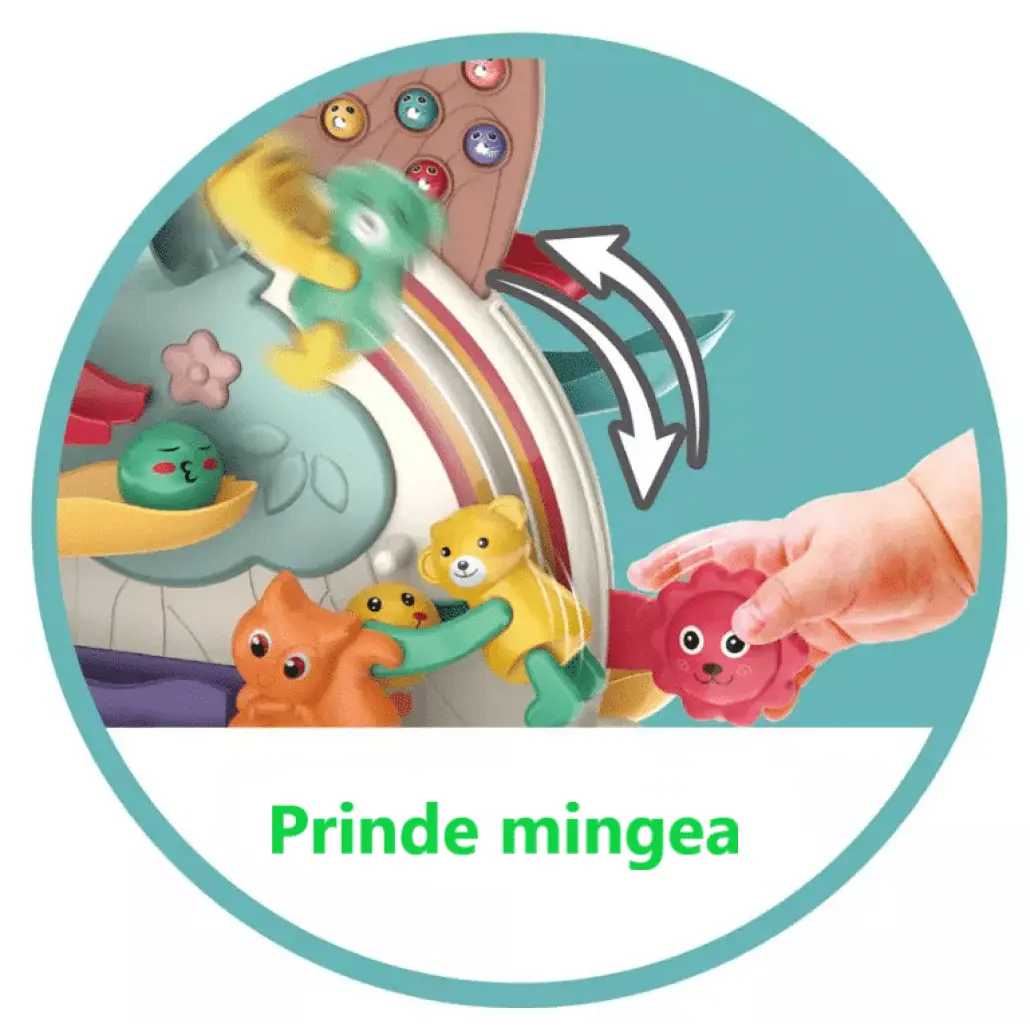 Centrul are 7 functii de joc si o jucarie metalica pui, după cum urmeaza: