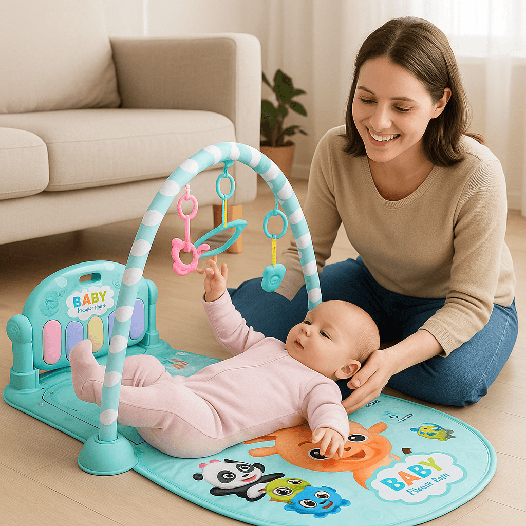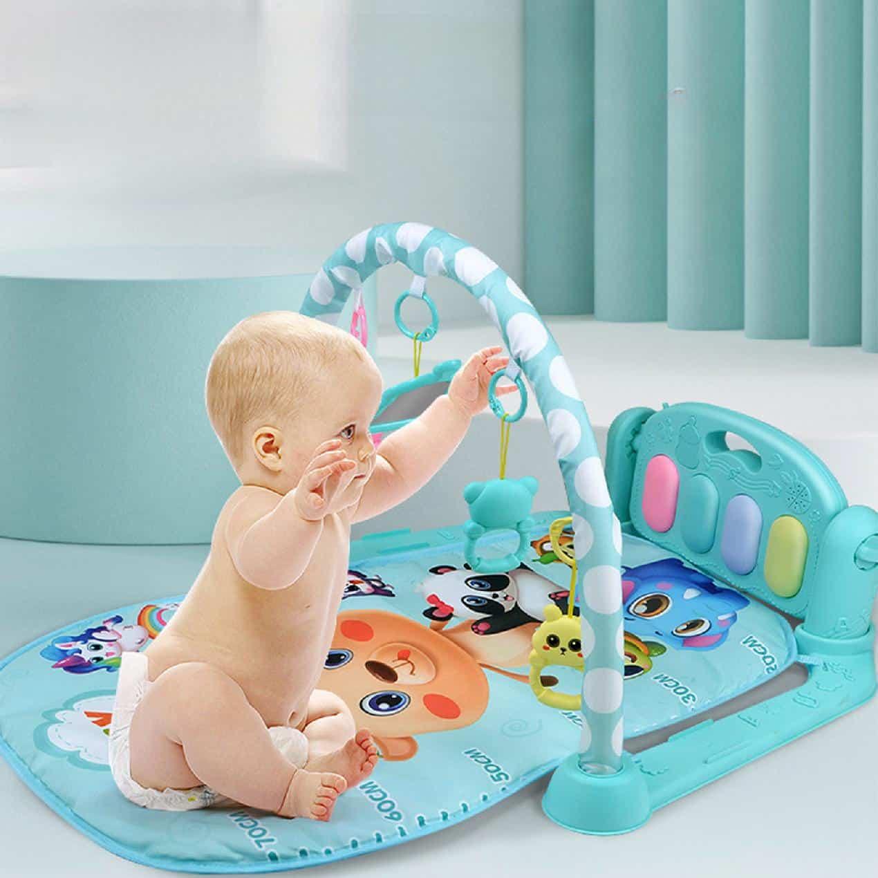 19 recenzii pentru Centru de Activitati pentru Bebelusi, 5 Jucarii de Agatat, Pian Muzical, Cadru Semicerc, Albastru Deschis, Animale Terestre, 77x56x42 Cm, + 0 Luni