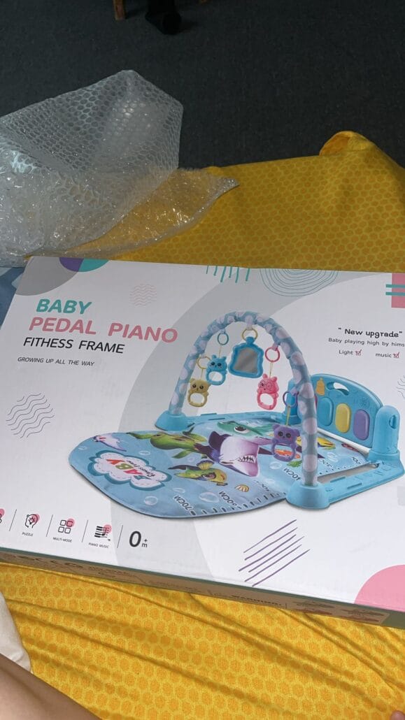 Pian muzical pentru picioruse: Proiectat cu pian dragut, care este detasabil si convenabil de transportat. Unghiul de a lovi cu piciorul atunci cand bebelusul este intins si asezat este reglabil. Contine 4 versuri pentru copii, 12 cantece linistitoare si 2 niveluri de volum pentru a satisface diferite cerinte de mediu. Acest saltea de joaca pentru copii este potrivita pentru bebelusi de la nou-nascuti.