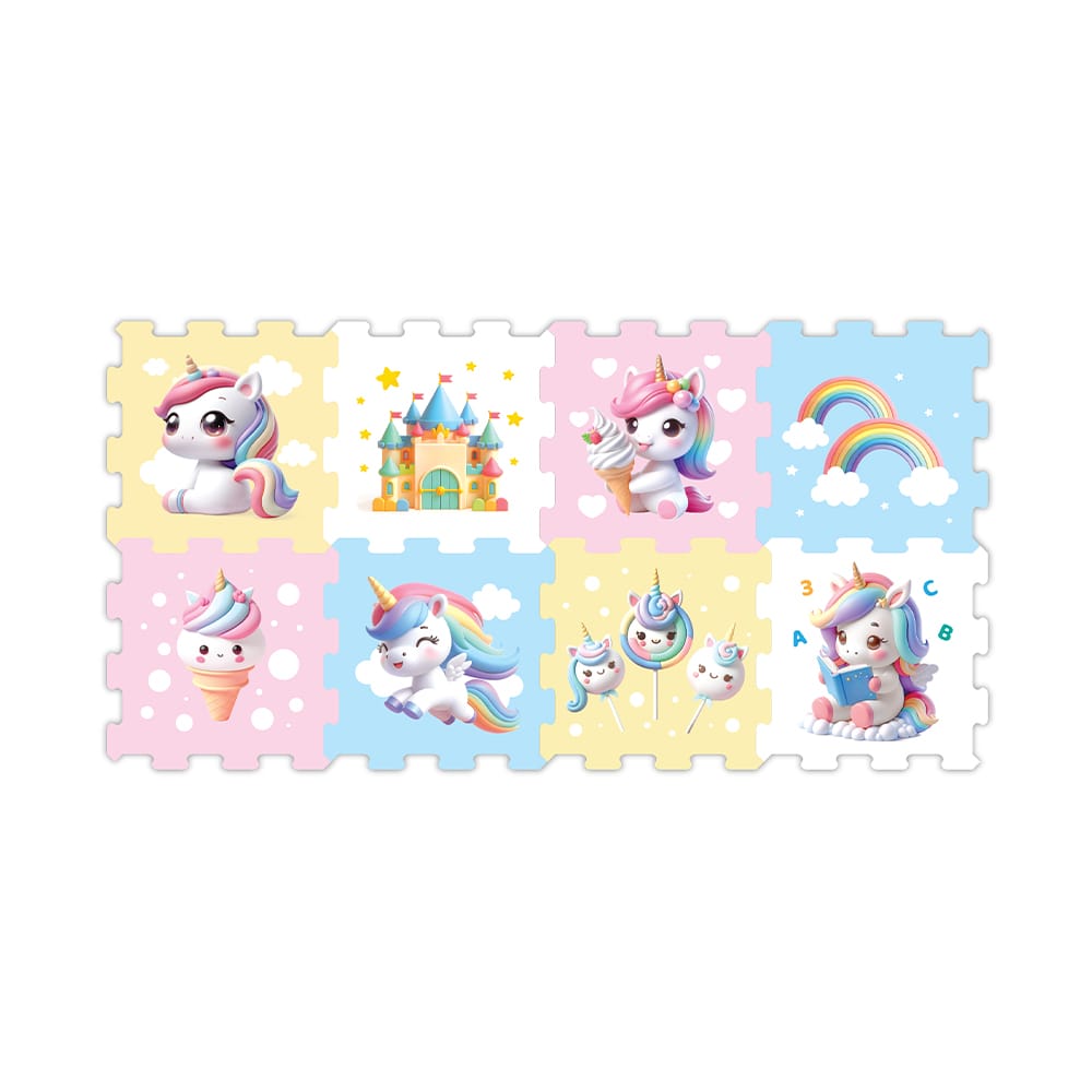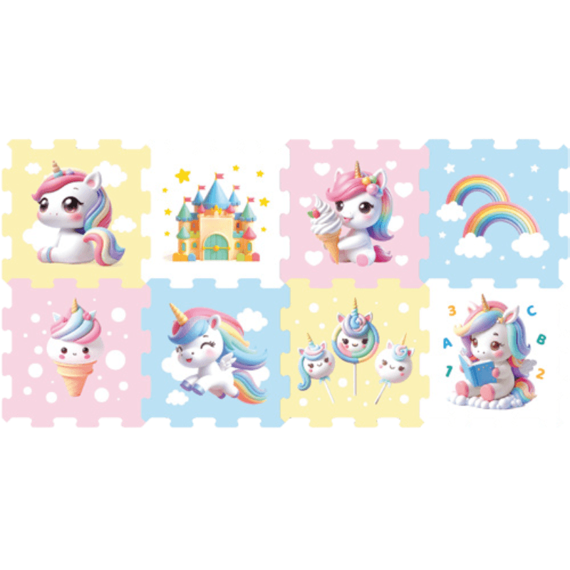 Covor Puzzle copii LUDIRO, 8 Piese Unicorn 30x30 Cm, Saltea Joaca din Spuma EVA Antiderapanta
