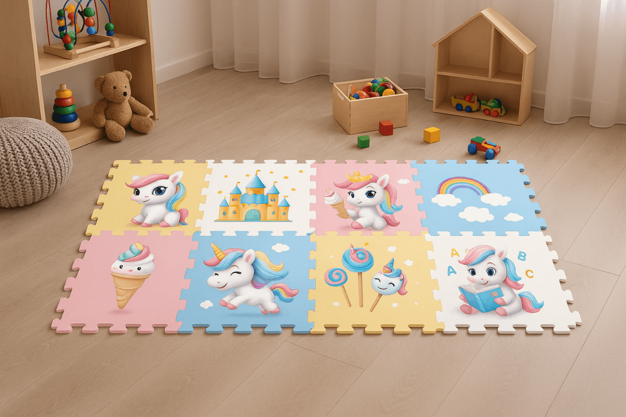 Covorasul puzzle LUDIRO cu 8 piese ilustrate cu unicorni este mai mult decat o saltea de joaca – este un colt de poveste, o rampa de lansare pentru invatare si o zona de relaxare pentru copilul tau. Imbina perfect siguranta, functionalitatea si farmecul vizual, devenind rapid unul dintre cele mai iubite obiecte din camera copilului.