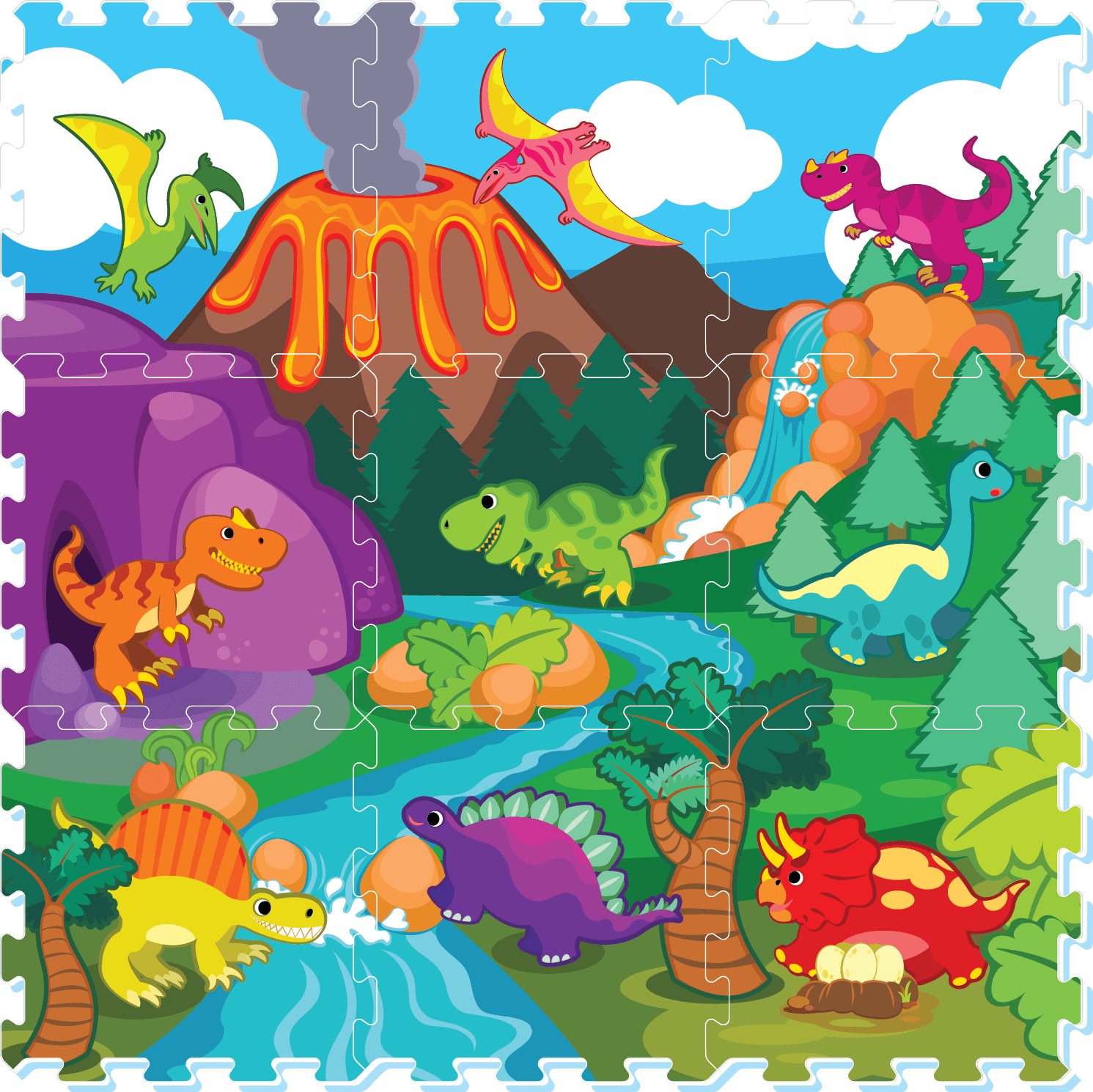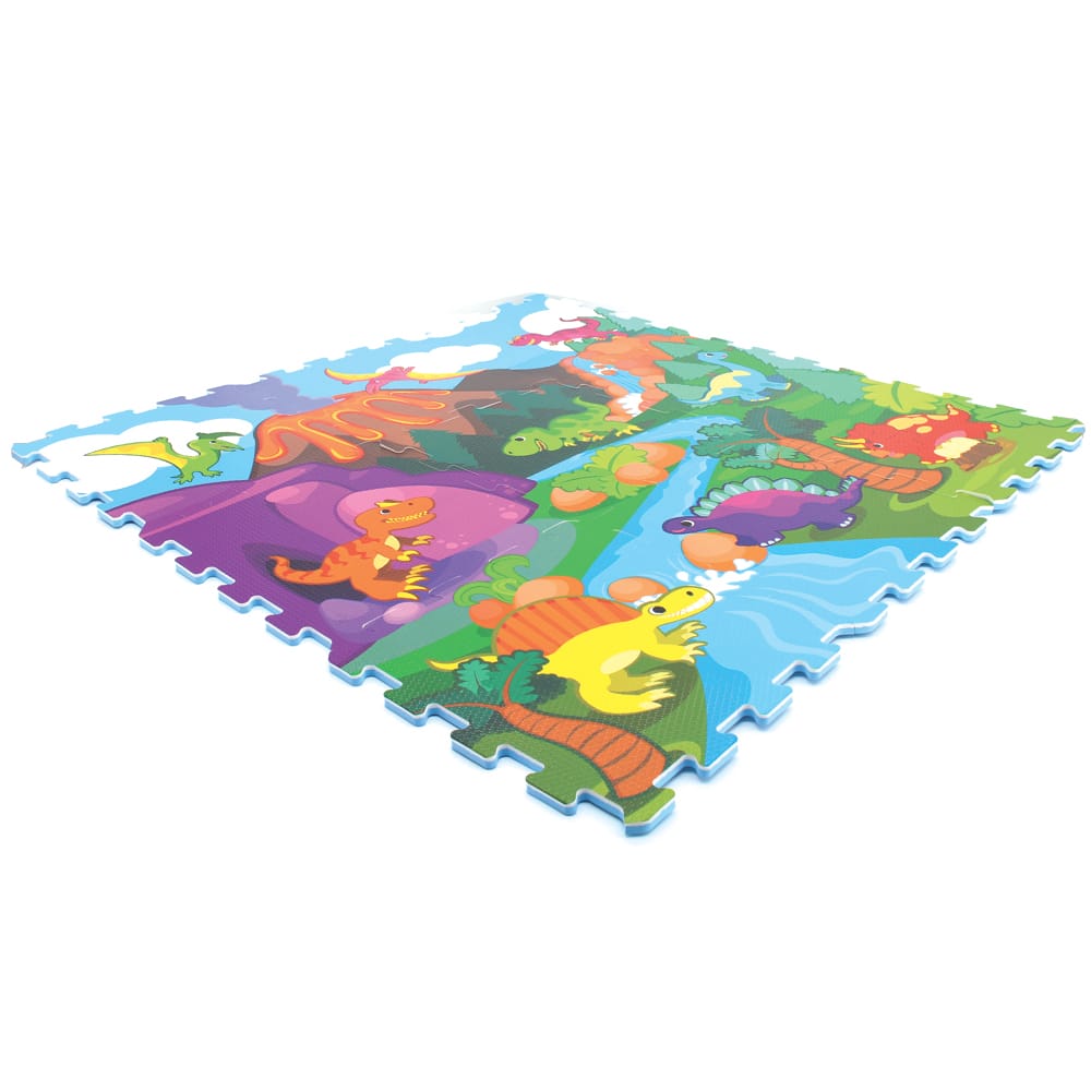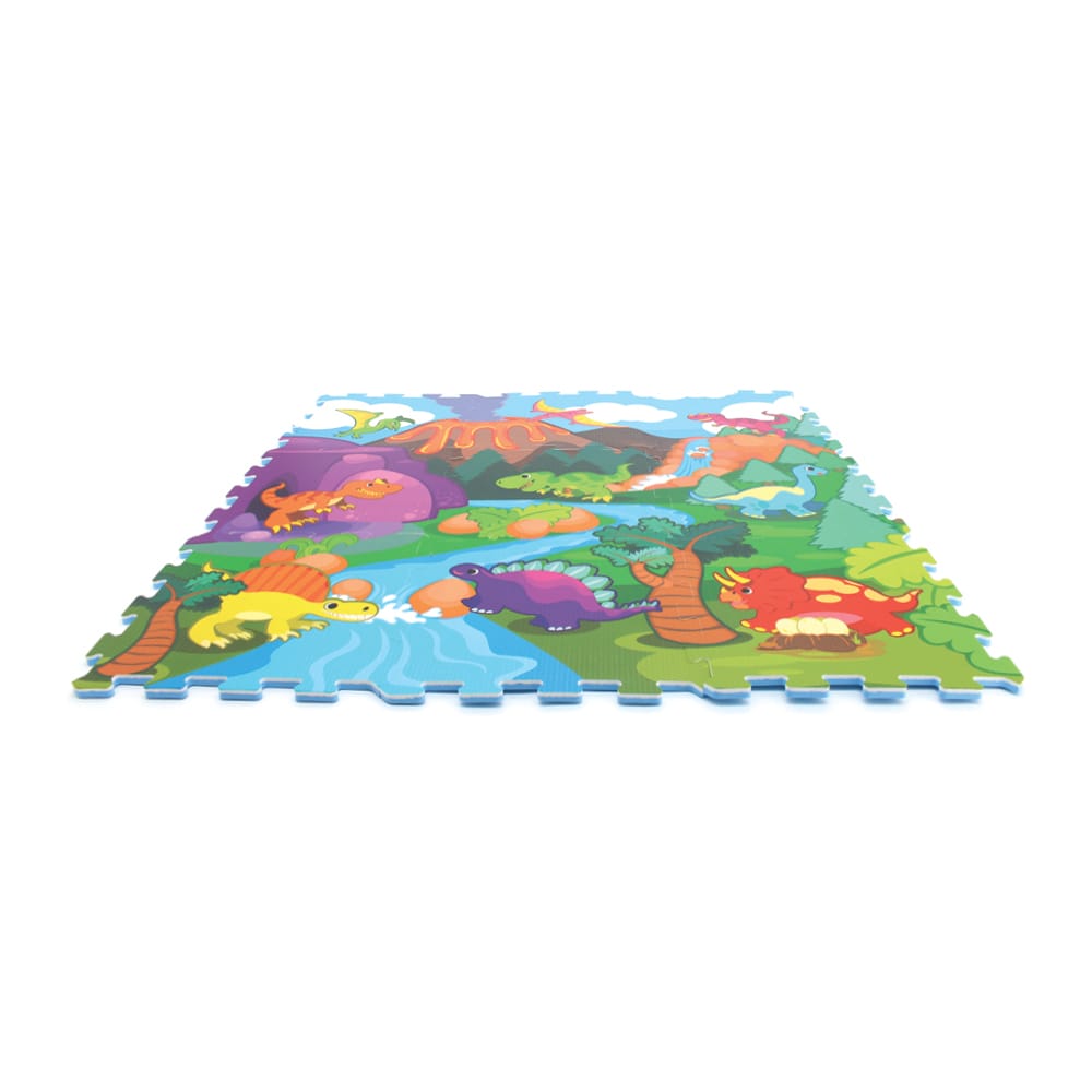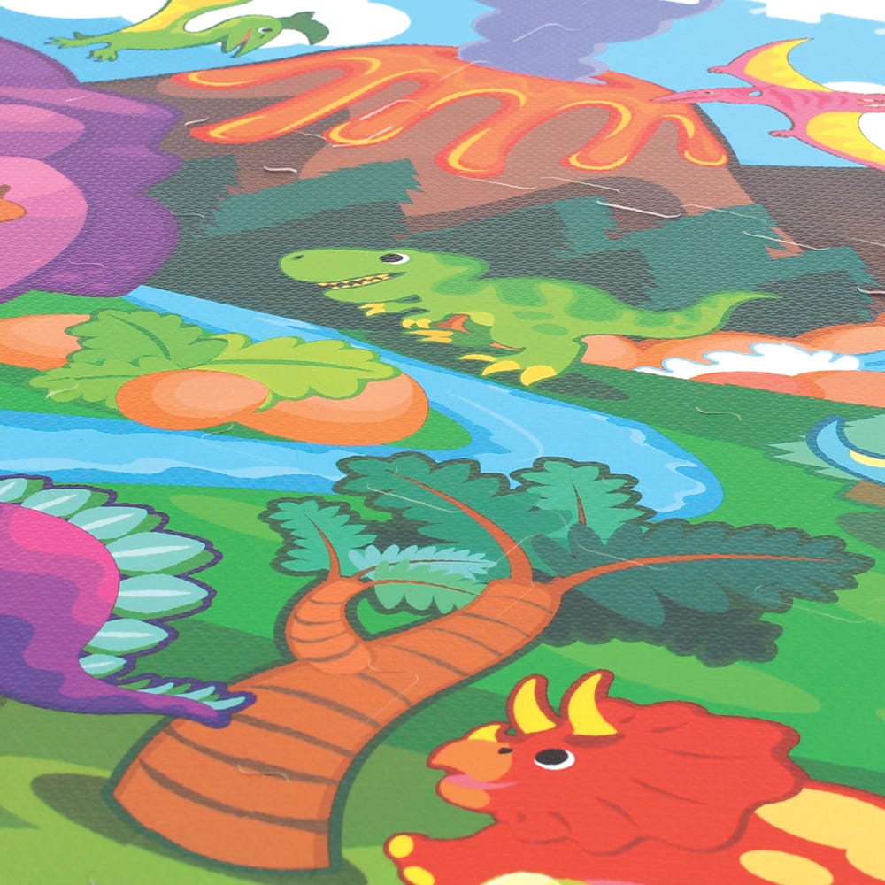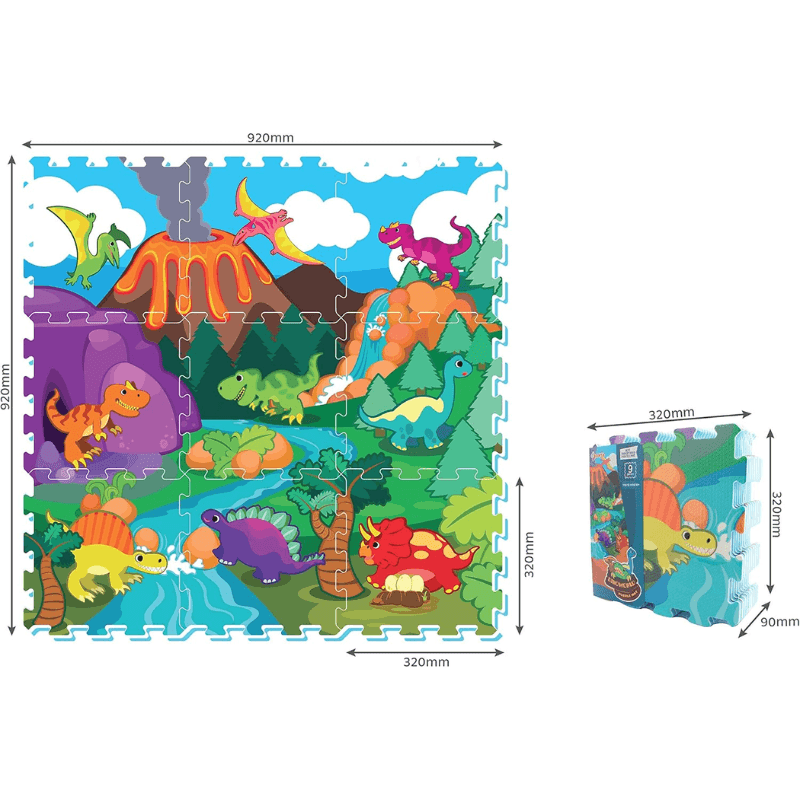 Cu un design viu colorat, inspirat din lumea fascinanta a dinozaurilor, si fabricat din spuma EVA de cea mai buna calitate – complet non-toxica si sigura –, acest set educativ este ideal pentru copiii de peste 10 luni. Cele 9 piese de puzzle de 32x32 cm se pot asambla usor intr-un covoras de 92x92 cm, formand o scena preistorica care stimuleaza imaginatia, creativitatea si curiozitatea naturala a copilului.