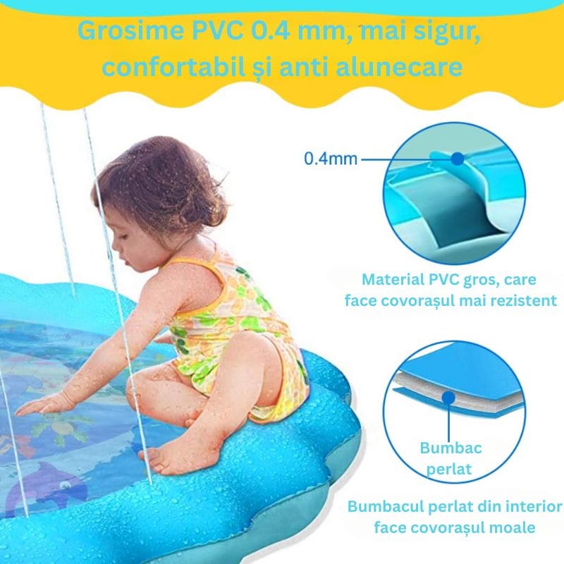 Imagineaza-ti o dupa-amiaza de vara, in care razele soarelui incalzesc usor curtea, pasarile ciripesc, iar rasul cristalin al copilului tau umple aerul. E descult, liber, ud pana la genunchi, stropit din cap pana-n picioare... si fericit. Acesta este momentul pe care ti-l ofera covorasul de joaca tip fantana arteziana LUDIRO — o oaza de bucurie pentru copilul tau si un prilej de conectare pentru voi, ca familie.