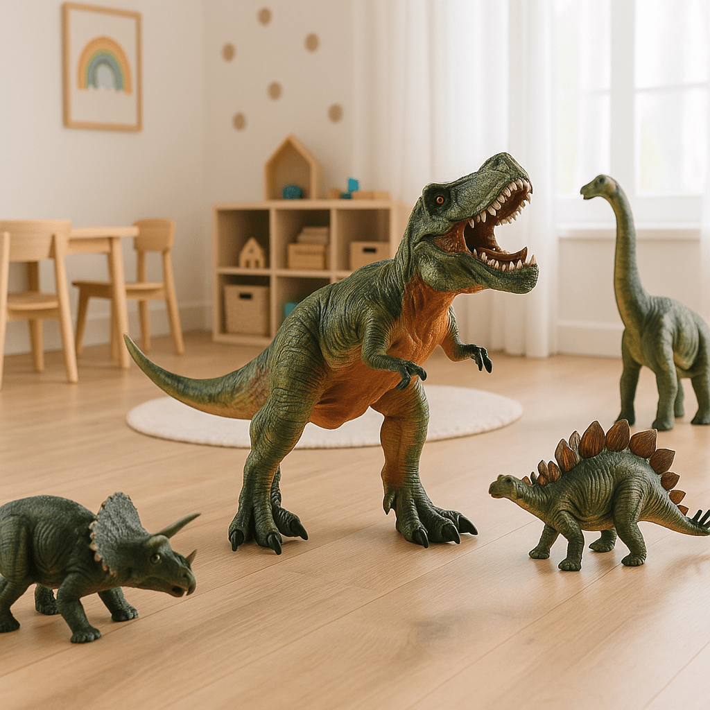 Dimensiunea figurinei incurajeaza joaca fizica, interactiva, departe de tablete sau televizor. Copilul poate construi decoruri, scene de lupta intre dinozauri sau chiar un „muzeu” de animale preistorice.