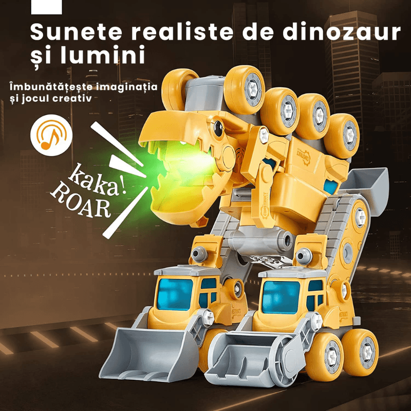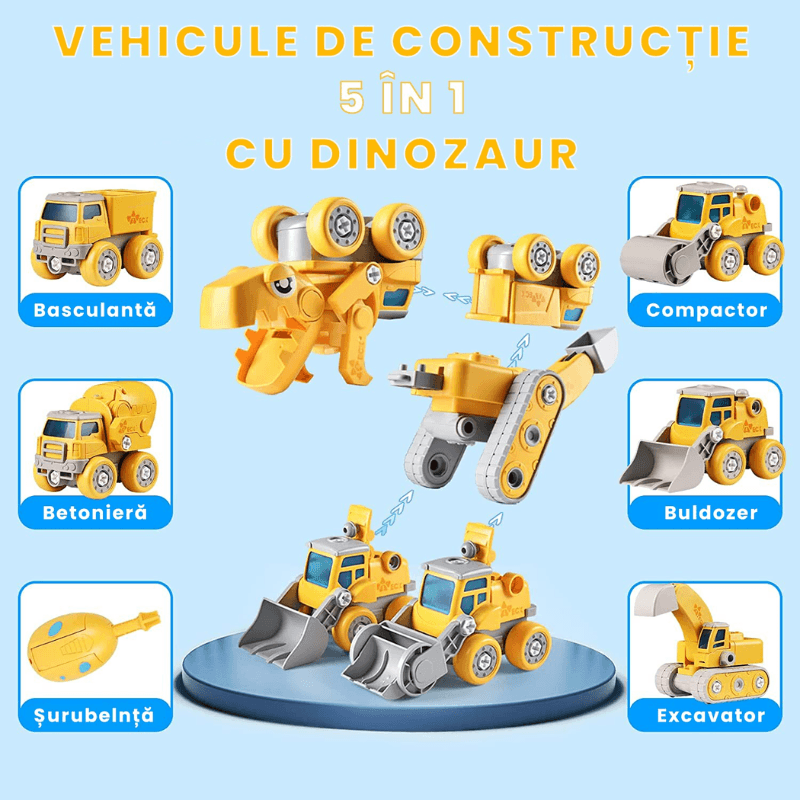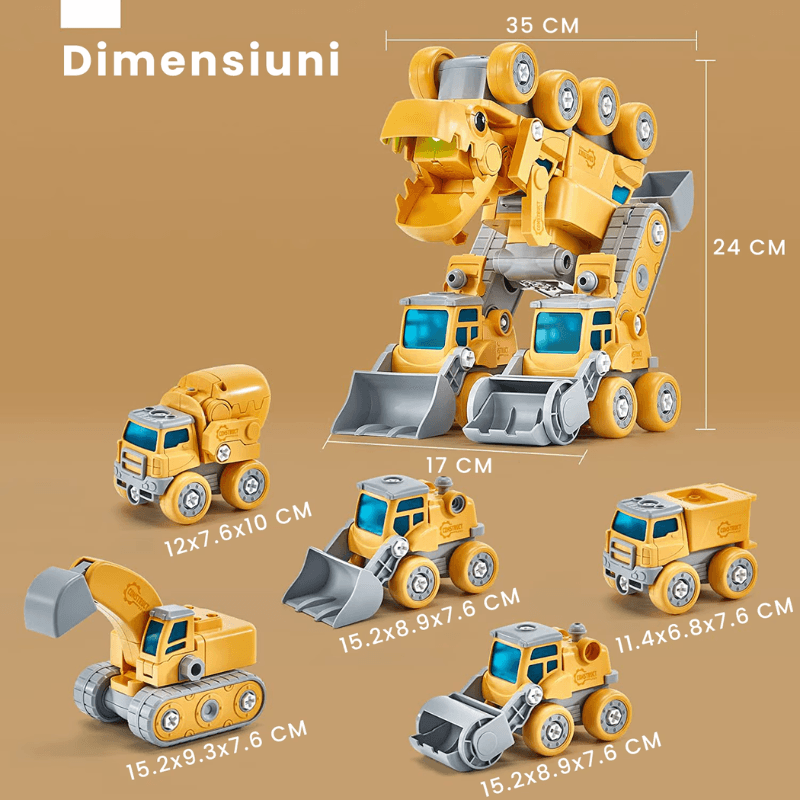 Ludiro lanseaza un set inovativ: 5 vehicule de constructii usor de asamblat/demontat + un robot dinozaur transformabil cu lumina si sunet. Ideea este simpla, dar cu impact profund: copiii exploreaza concepte tehnice prin joaca, in timp ce dezvolta abilitati esentiale – motrica fina, gandire logica, rabdare si creativitate.