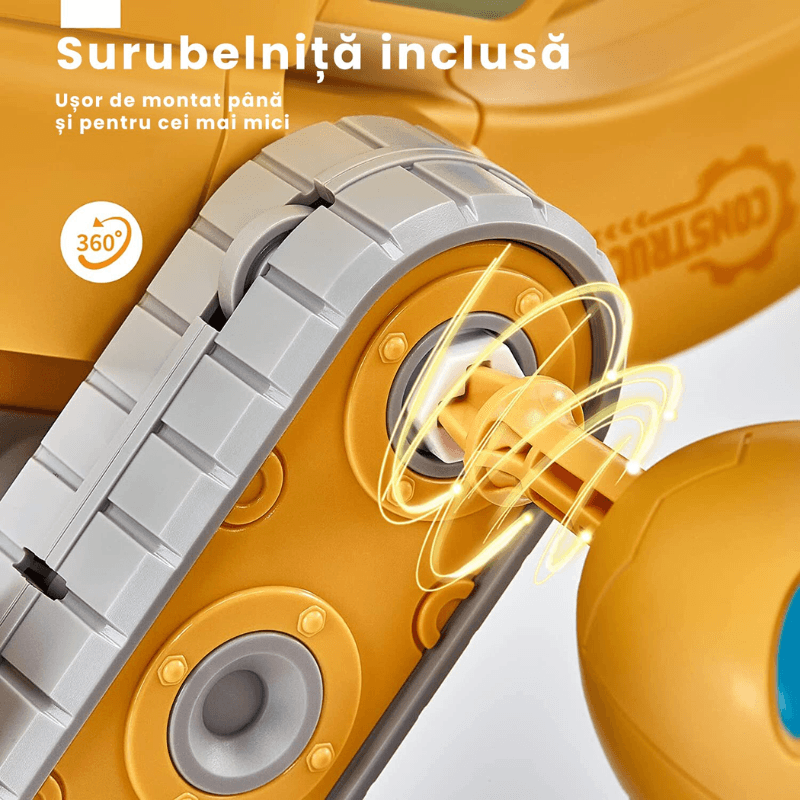 Copilul exploreaza modul in care rotile se invart, cum functioneaza suruburile, cum legaturile mobile permit transformari. Intelege concepte precum: mecanica simpla, puncte de rotatie, directie – chiar fara sa constientizeze ca invata.