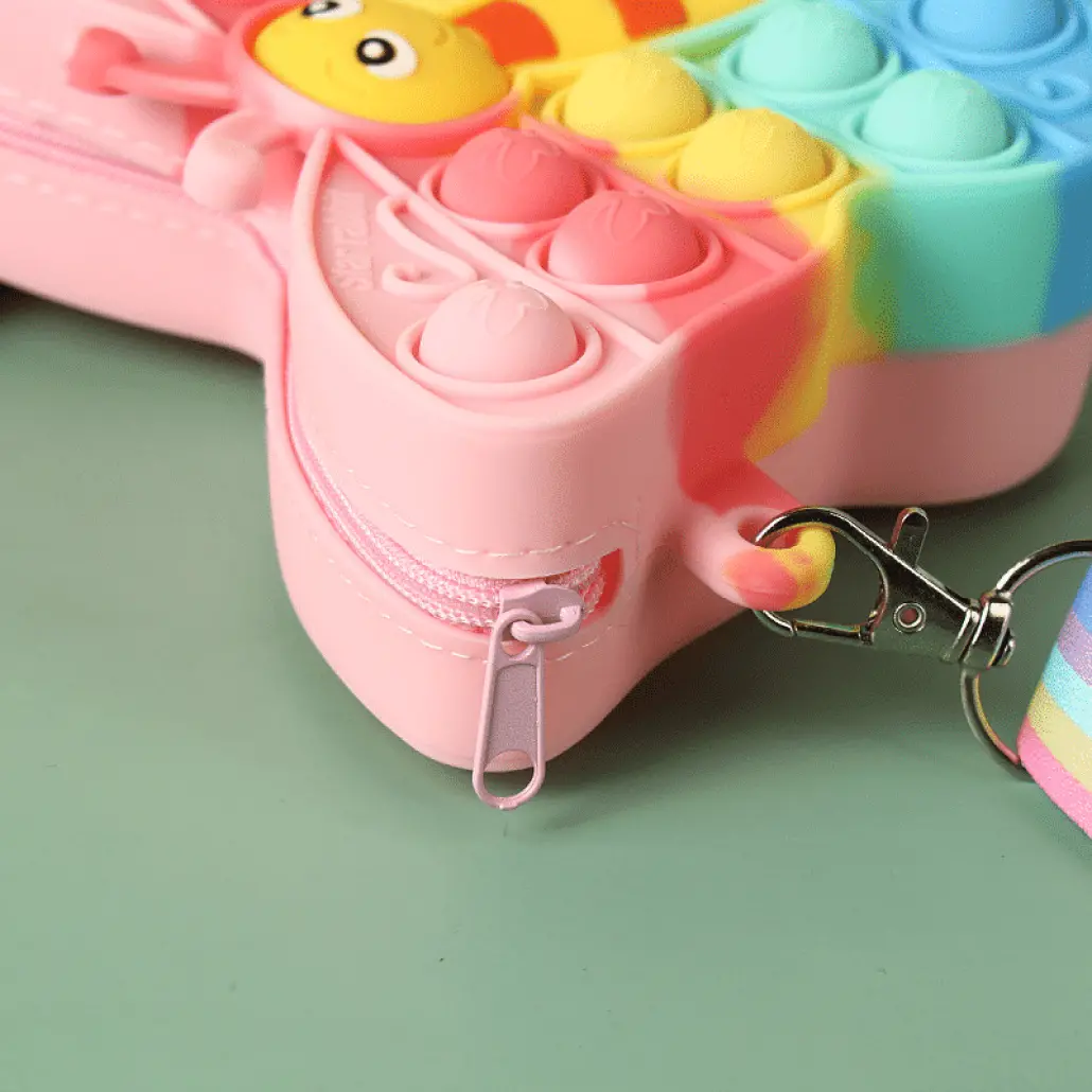 Copiii se distreaza de minune, nu va faceti griji. Geanta de jucarie pop fidget este fabricata din silicon de inalta calitate, cu o suprafata neteda si bule din silicon moale.