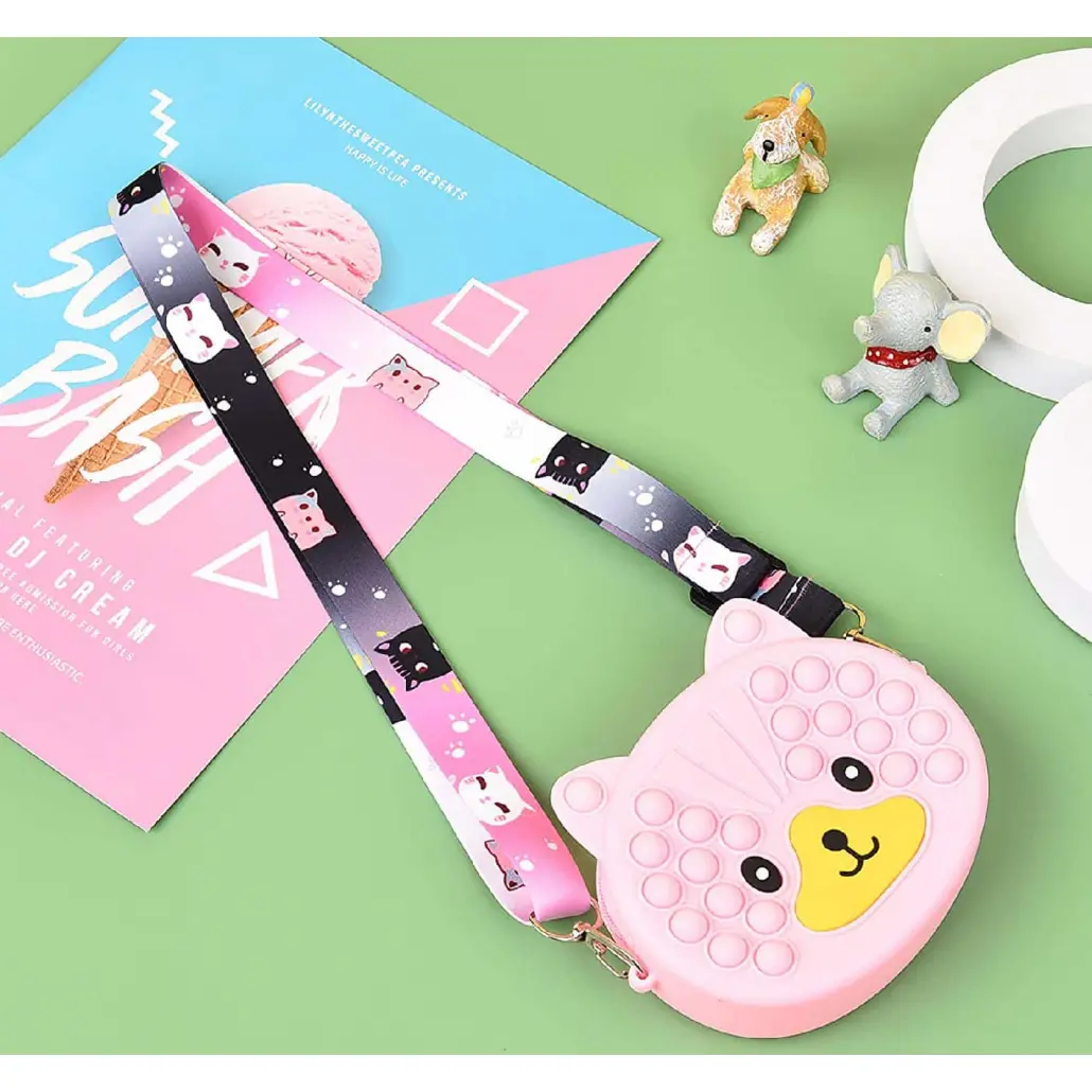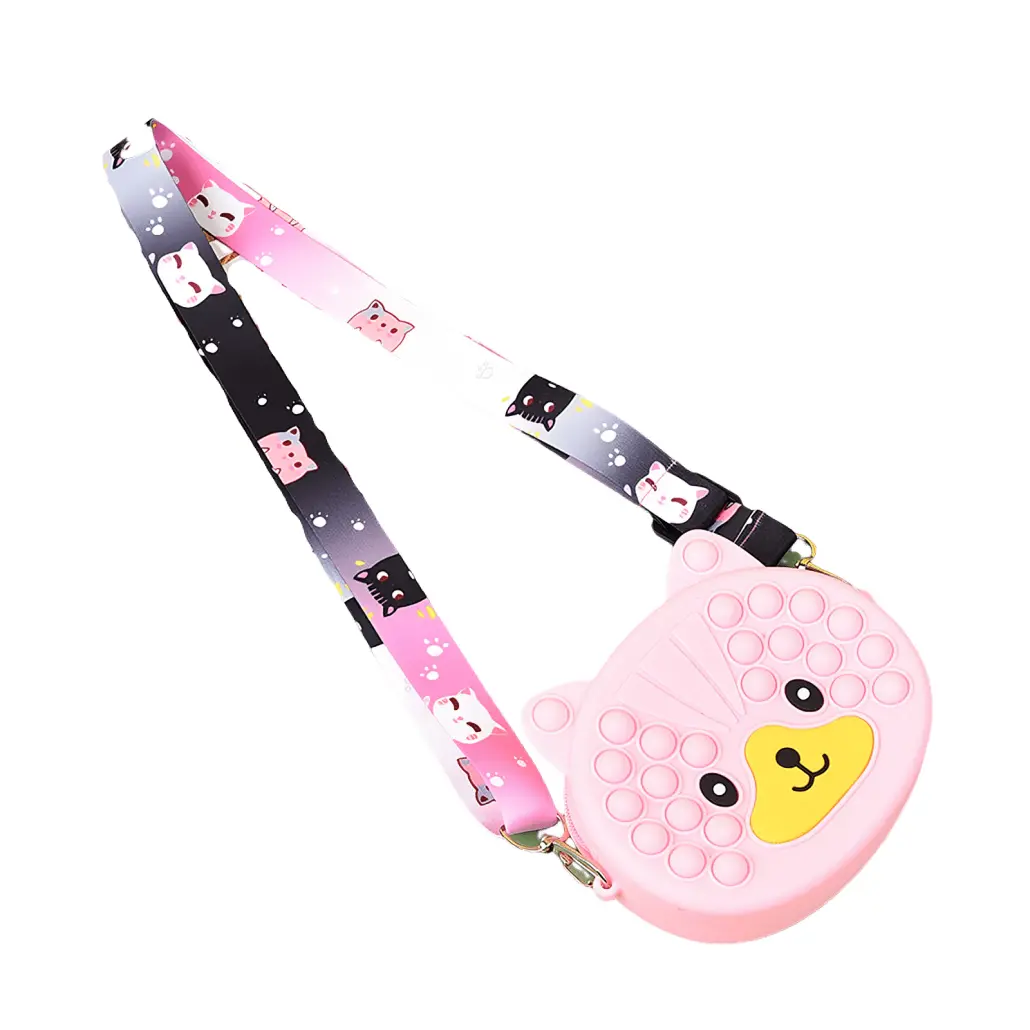 Este atat o jucarie pop fidget si cat si o geanta de umar. Este foarte distractiva! Este un cadou la moda: