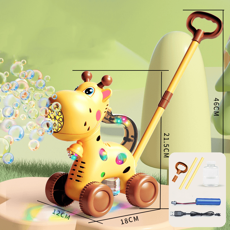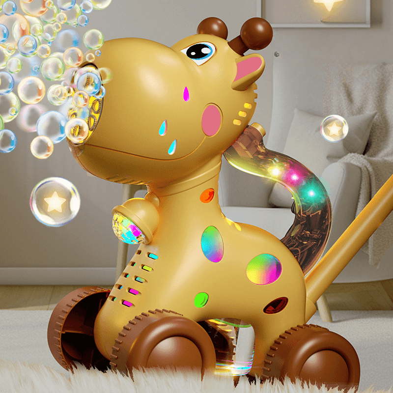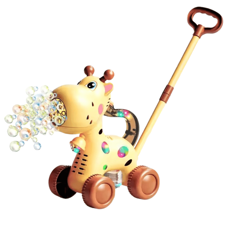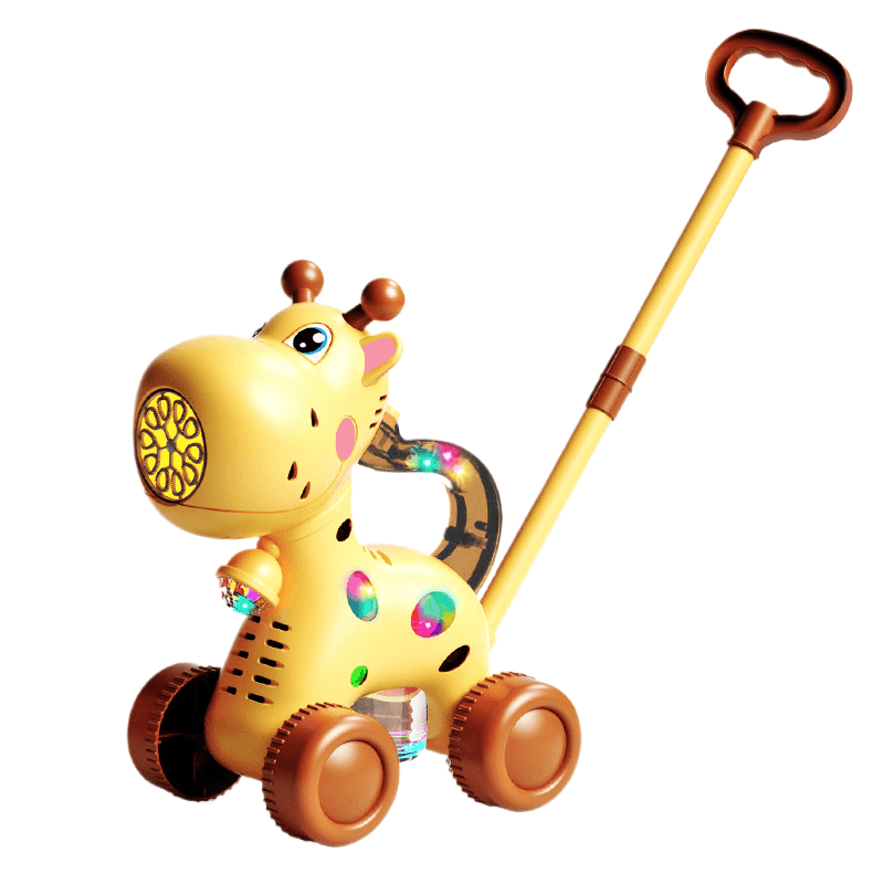 Aceasta jucarie inteligenta si versatila combina functiile de suflator automat de baloane de sapun cu rolul de jucarie de impins, oferind o experienta completa si captivanta pentru copiii mici intre 1 si 4 ani. Cu lumini colorate, design simpatic de girafa si functionare silentioasa pe baterie reincarcabila, este jucaria ideala pentru dezvoltare, relaxare si joaca in familie.