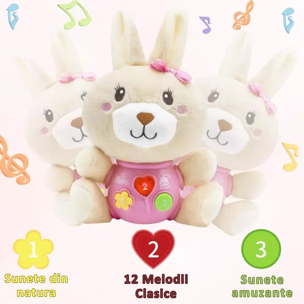Iepuraș de pluș cu sunete și lumini — prima prietenă muzicală a bebelușului tău