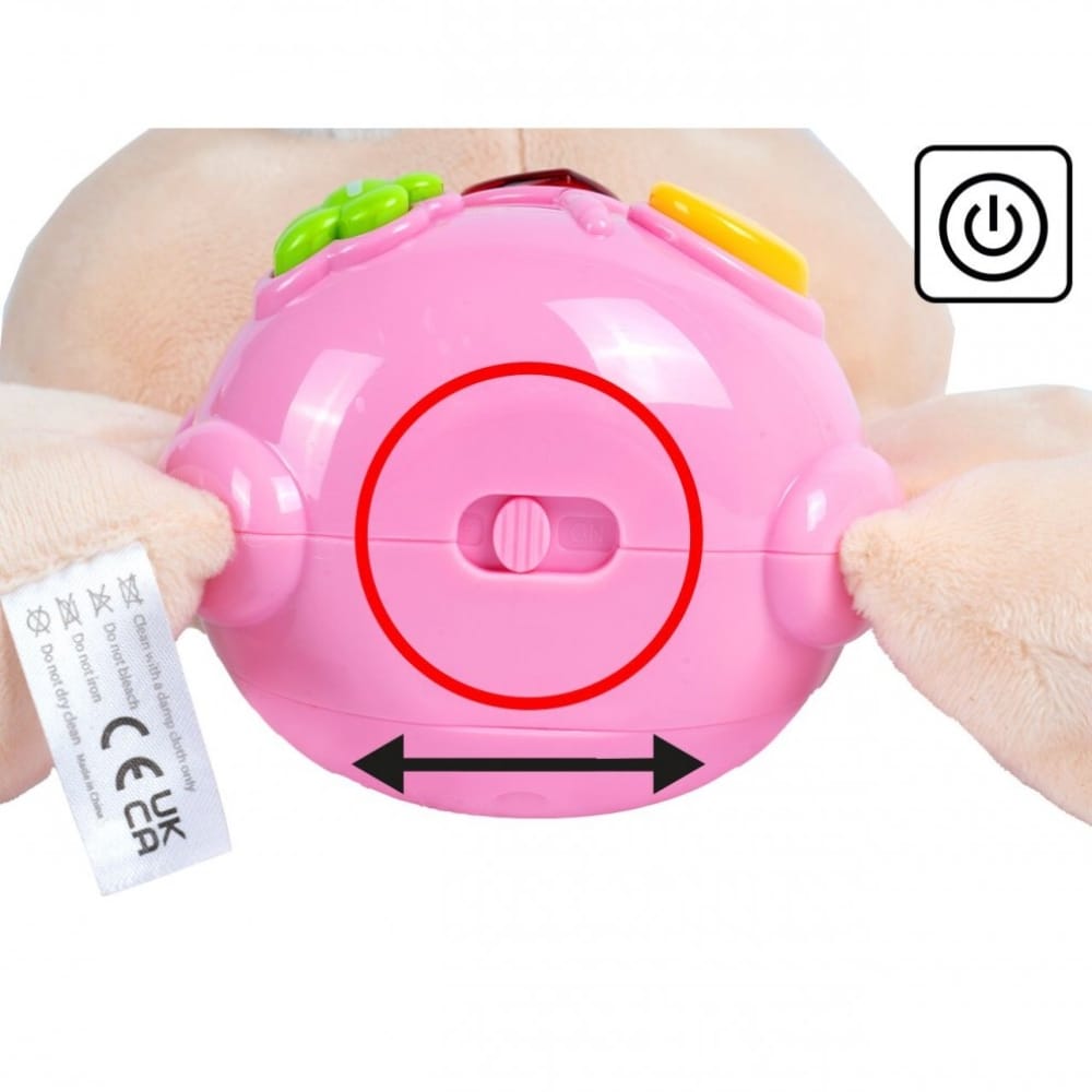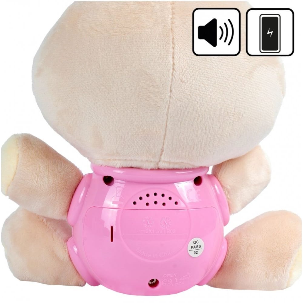 🧸 Pluș delicat, cu fundița roz — Corp confecționat din pluș fin, crem-roz, incredibil de moale la atingere, cu o fundă roz drăguță pe ureche. Modulul electronic din plastic ABS non-toxic, fără muchii ascuțite sau piese mici detașabile.