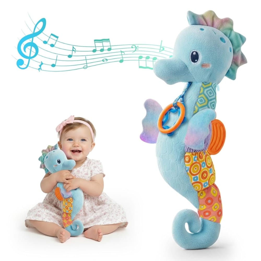 Home Varsta 0-12 Luni Jucărie Bebeluși Căluț de Mare Muzical și Senzorial, Dentiție, Zornăitoare, Foșnitoare, Fără BPA, Albastru, 0+ Luni