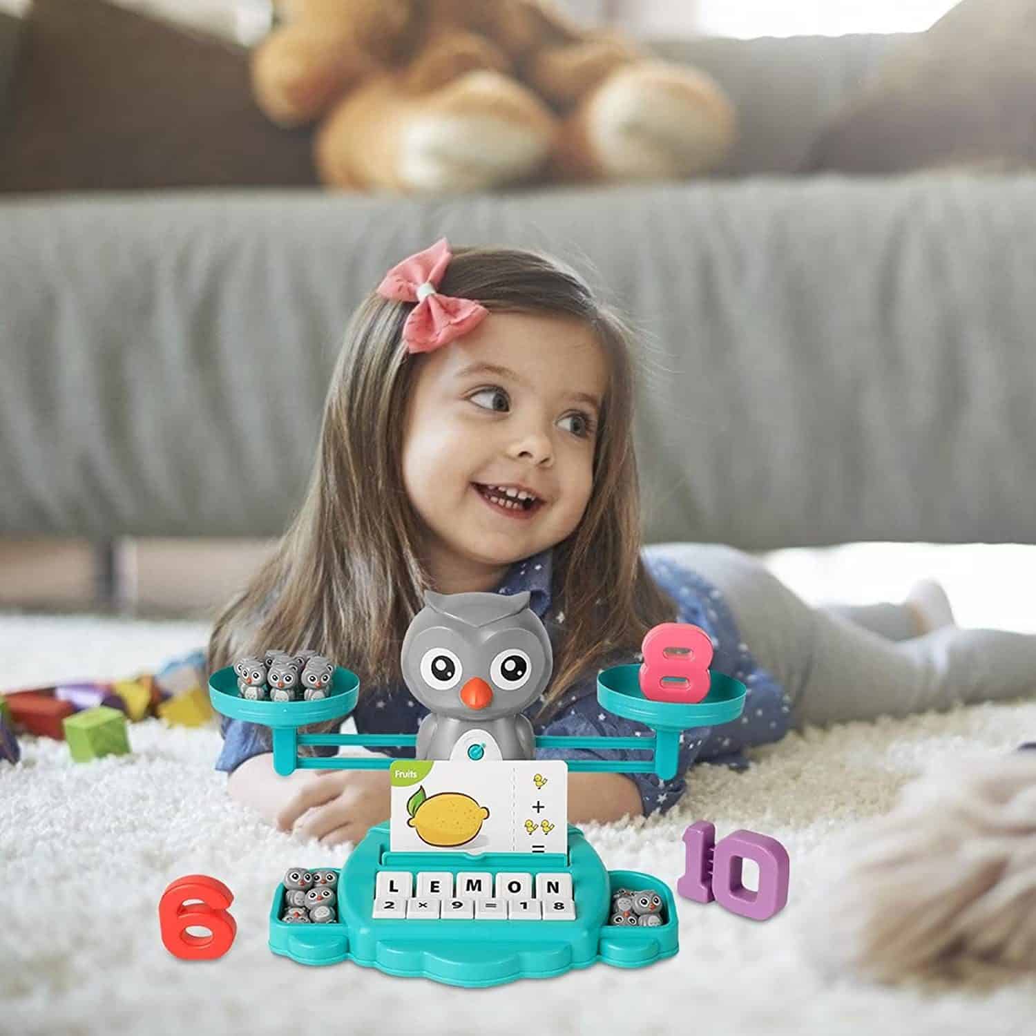 JUCARIE EDUCATIVA SI CADOU IDEAL PENTRU MICUTUL TAU: Jucarie educativa perfecta pentru a introduce copiii prescolari cu varste de 3, 4, 5, 6,7 ani acasa sau la scoala in lumea numerelor si a invata primele elemente de baza in matematica si lietere pentru prescolari. Acesta jucarie tip bufnita cu balanta este educativa si distractiva fiind amicul parintilor si profesorilor.