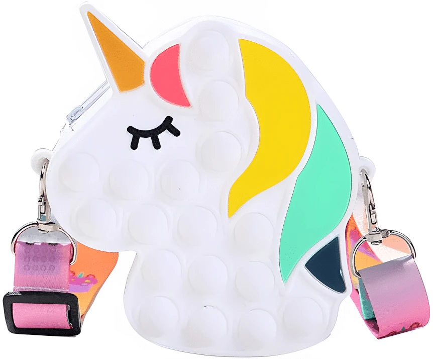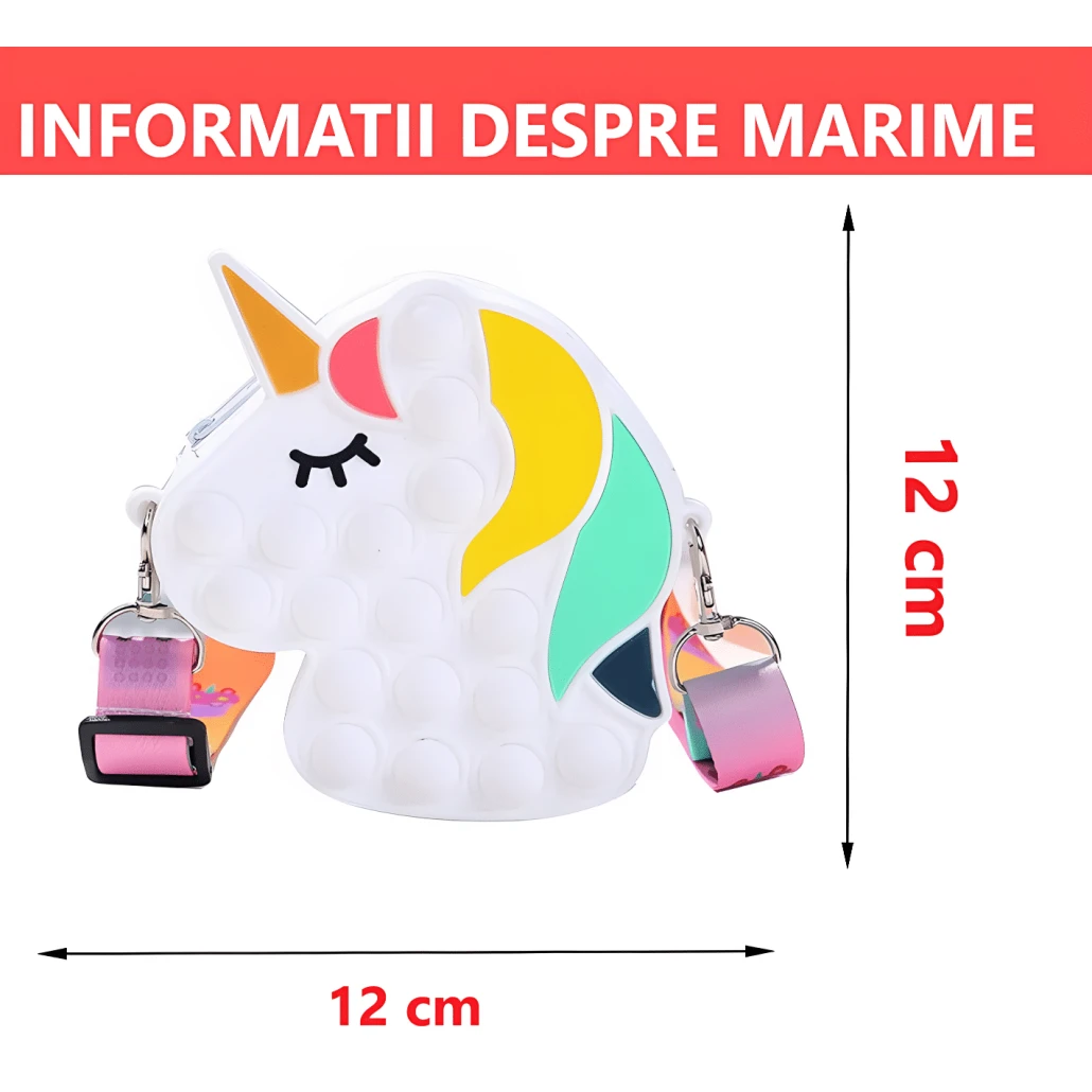 Noua geanta de jucarie POP IT NOW are un design unic, doi in unu. Este atat o jucarie pop fidget si cat si o geanta de umar. Este foarte distractiva!