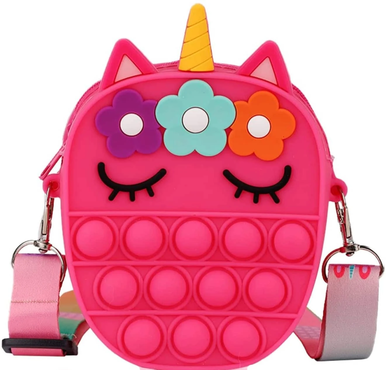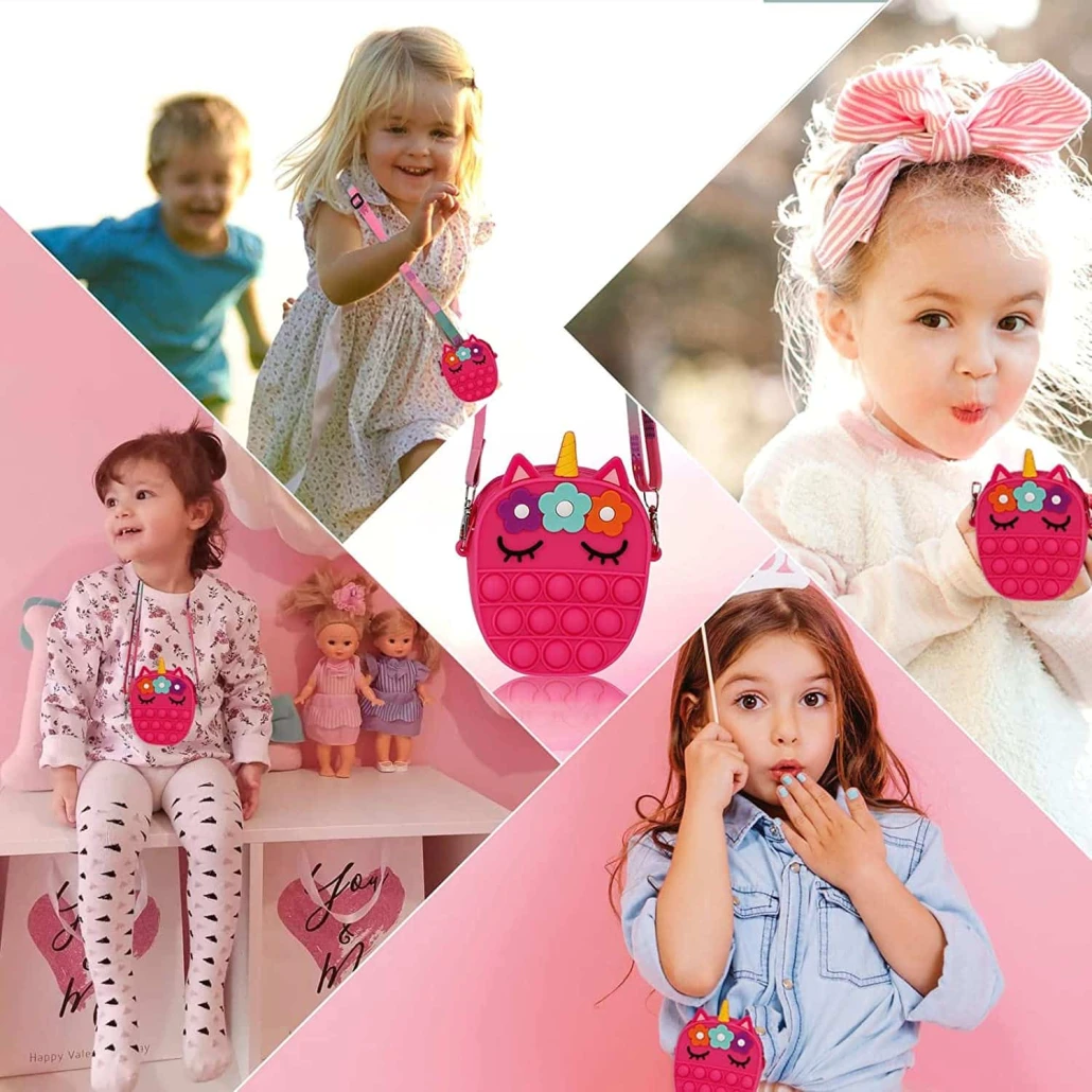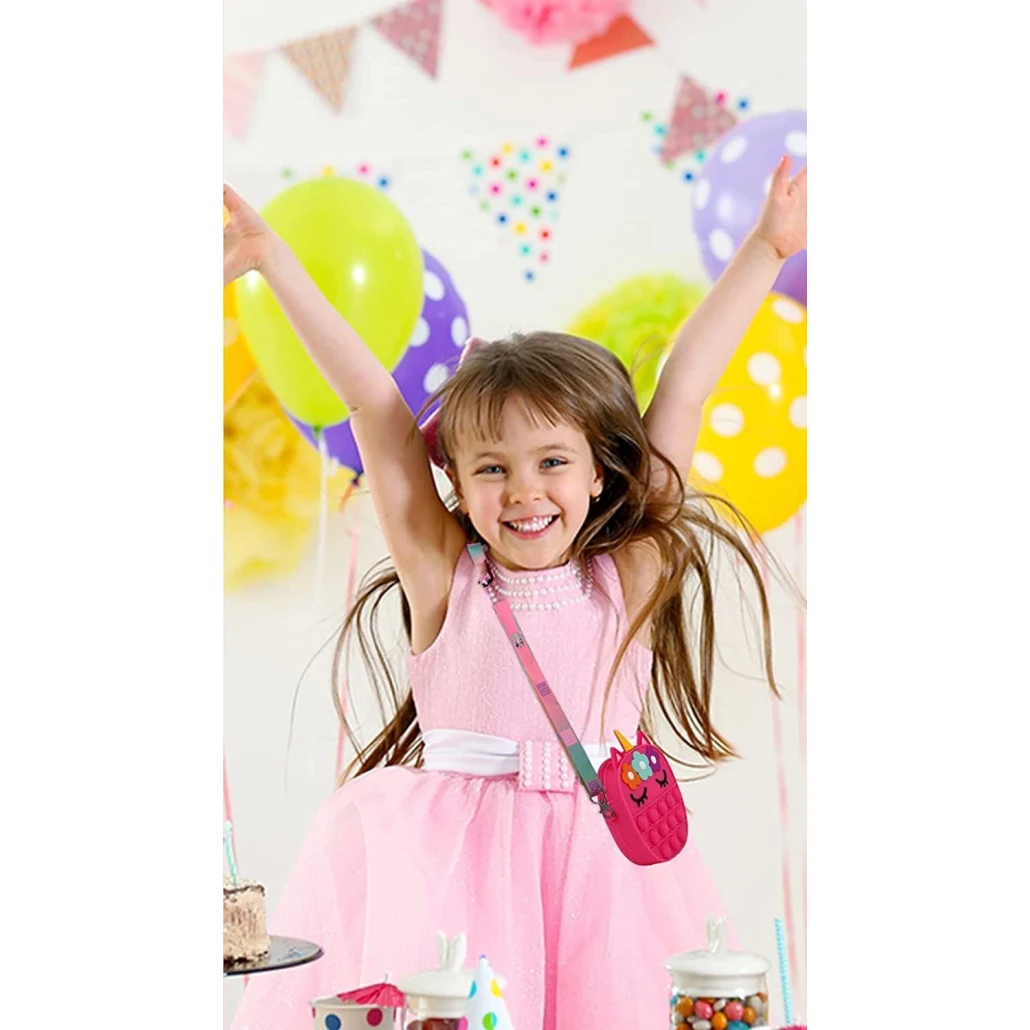 Noua geanta de jucarie POP IT NOW are un design unic, doi in unu. Este atat o jucarie pop fidget si cat si o geanta de umar. Este foarte distractiva!