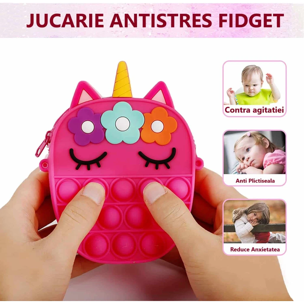 Copiii se distreaza de minune, nu va faceti griji. Geanta de jucarie pop fidget este fabricata din silicon de inalta calitate, cu o suprafata neteda si bule din silicon moale. Este durabil, nu este usor de deteriorat si poate fi reutilizat.