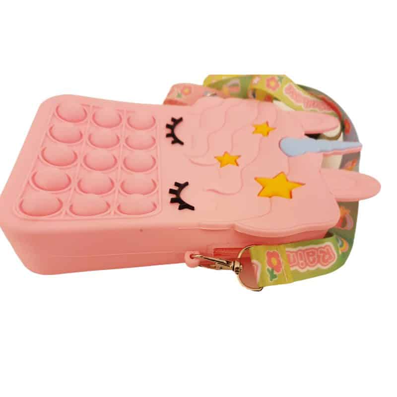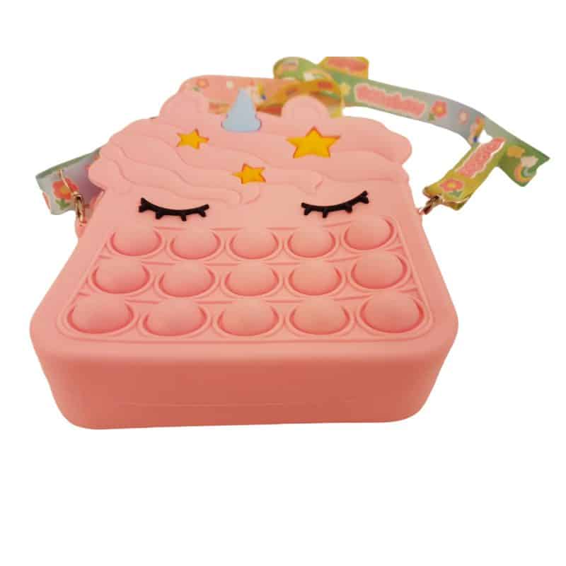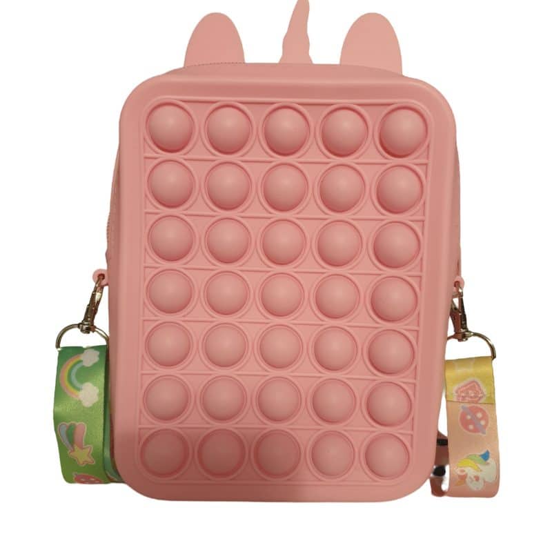 Noua geanta de jucarie POP IT NOW are un design unic, doi in unu. Este atat o jucarie pop fidget si cat si o geanta de umar. Este foarte distractiva!