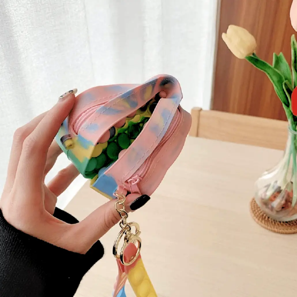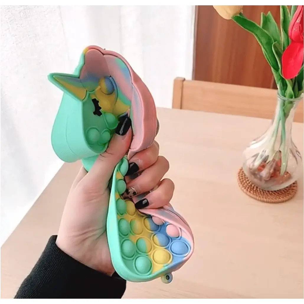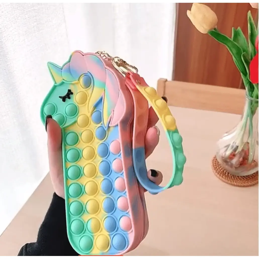 Noul penar de jucărie POP IT NOW are un design unic, doi in unu. Este atat o jucarie pop fidget și cat si un penar sau gentuta de mana. Este foarte distractiva!