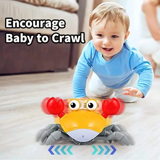 Jucarie inteligenta distractiva: jucaria pentru copii cu crab care se plimba evita automat obstacolele. Cand credeti ca sunteti pe cale sa prindeti jucaria crab, aceasta va evita in mod activ obstacolele si va merge in directia opusa. Muzica vesela si luminile stralucitoare atrag atentia copiilor si ii fac sa o urmareasca fericiti.
