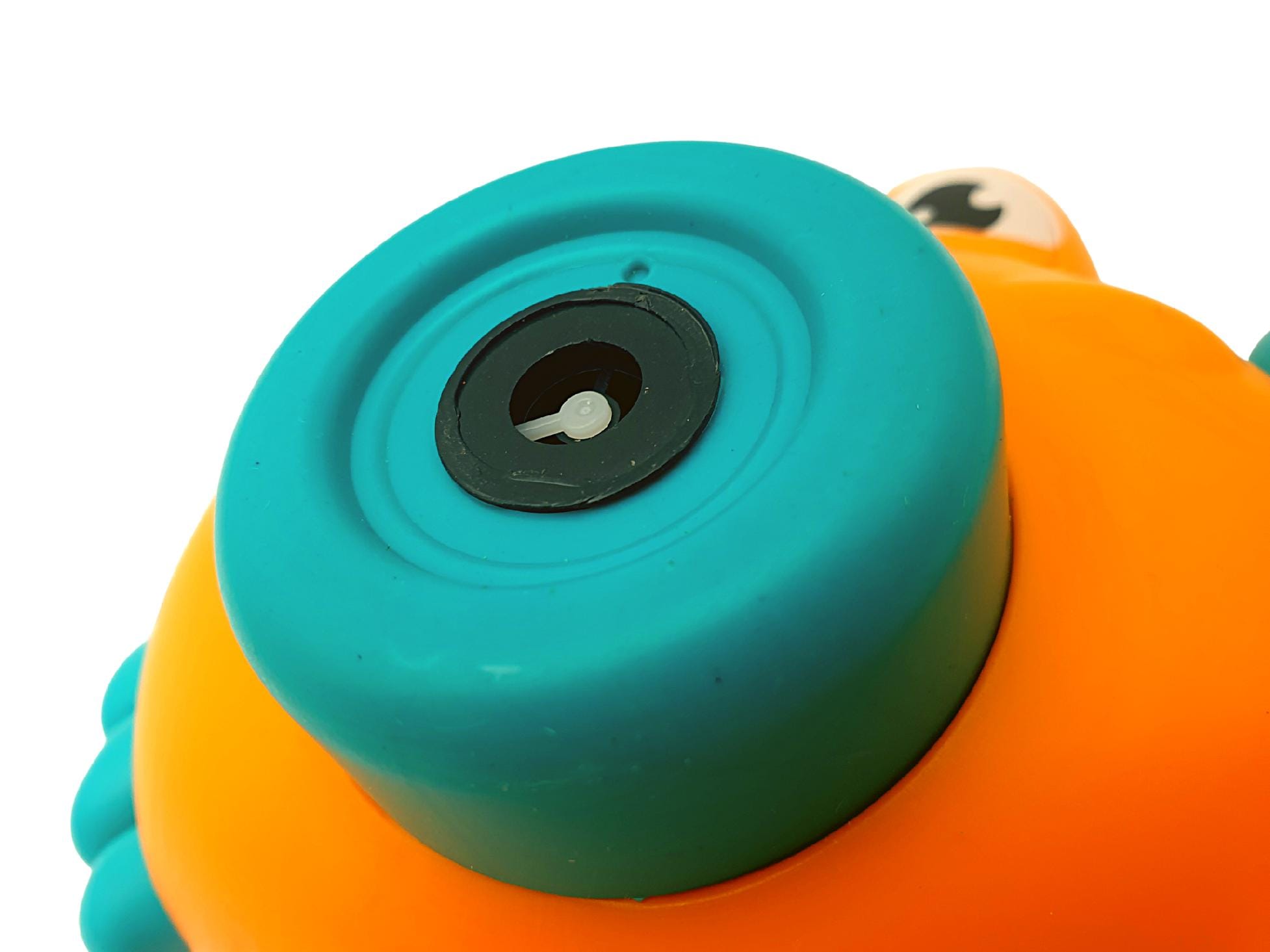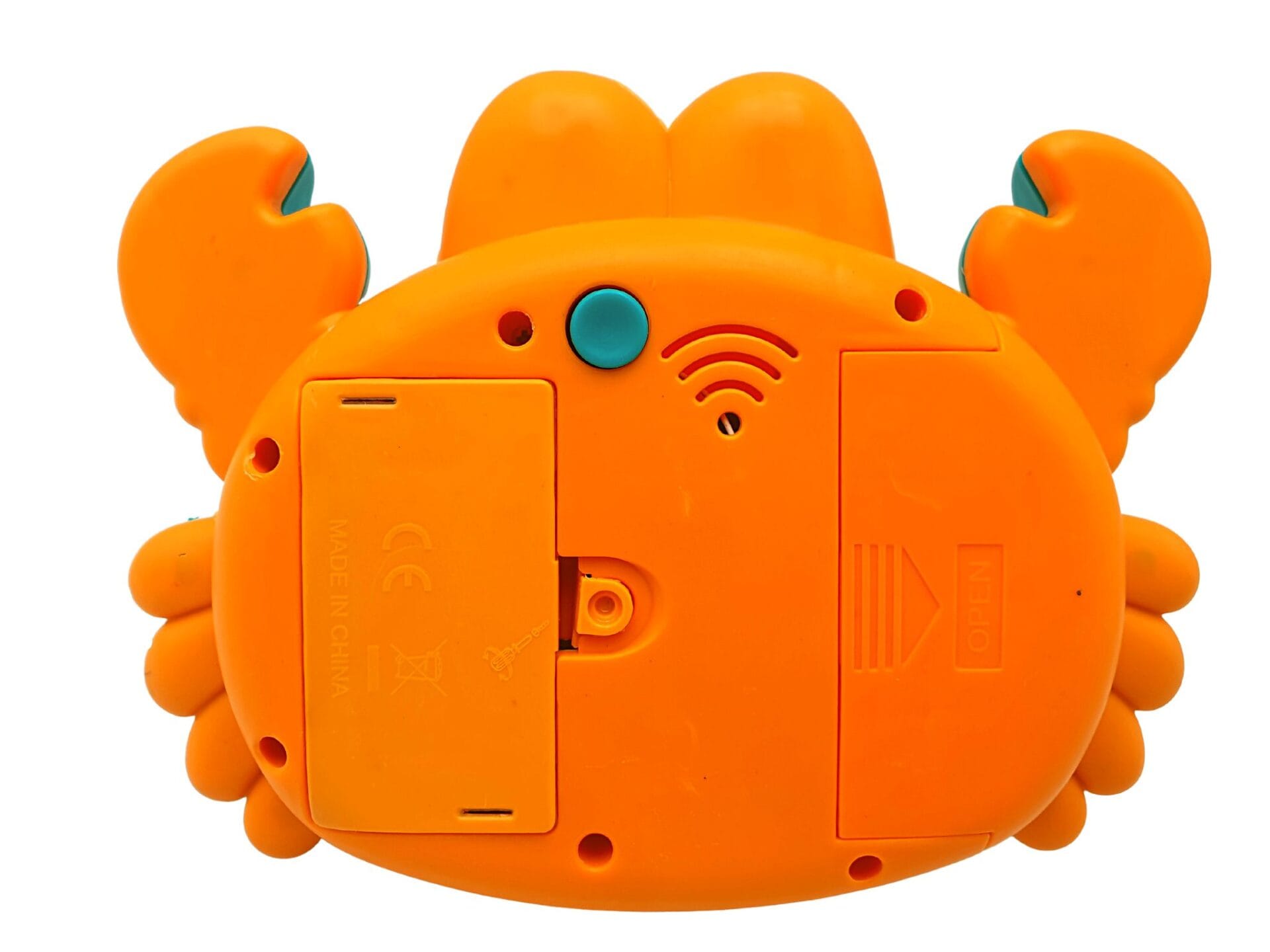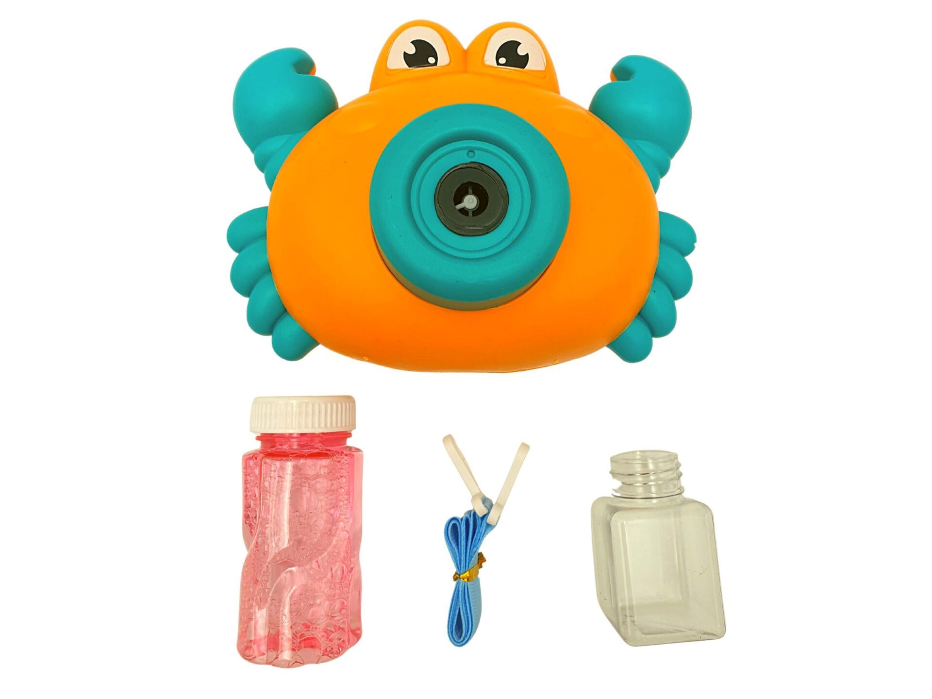 Aparat foto jucarie pentru bule de sapun Crab functioneaza cu 3 baterii AA de 1,5 V contine 1 rezervor reincarcabil si 1 recipient de lichid pentru baloane a cate 70 ml fiecare.