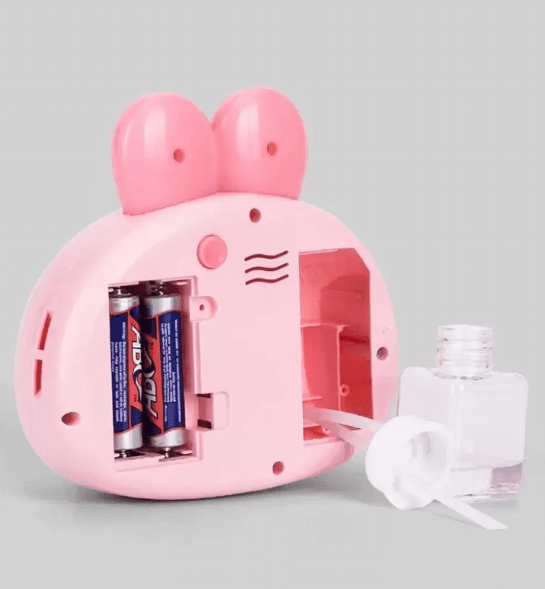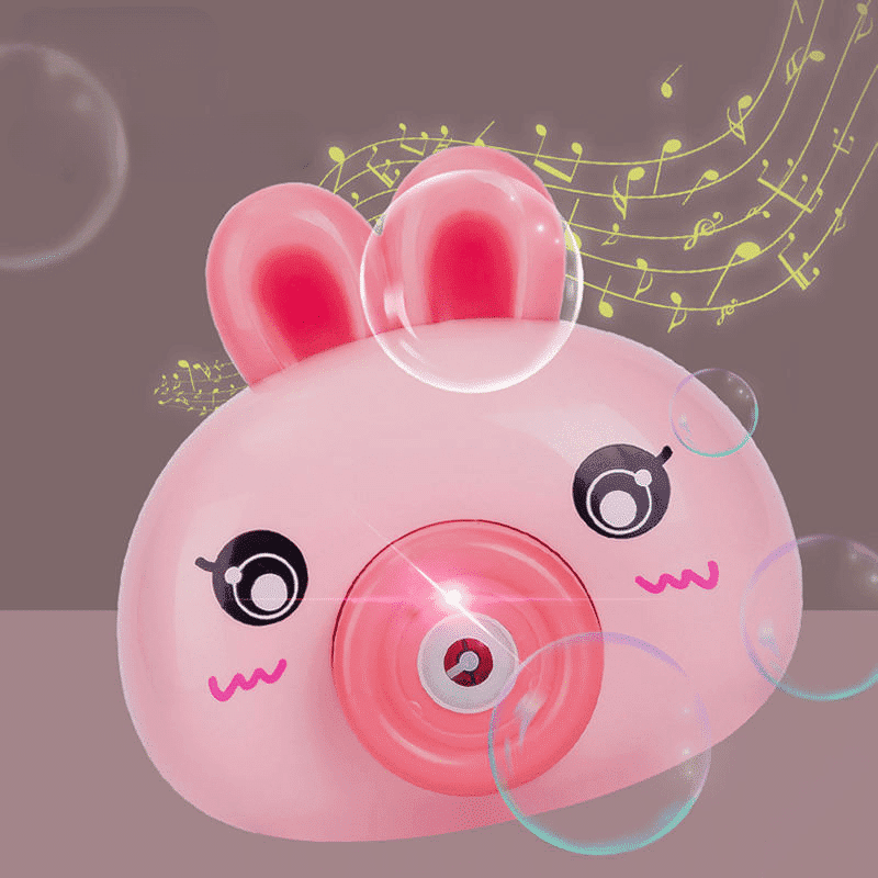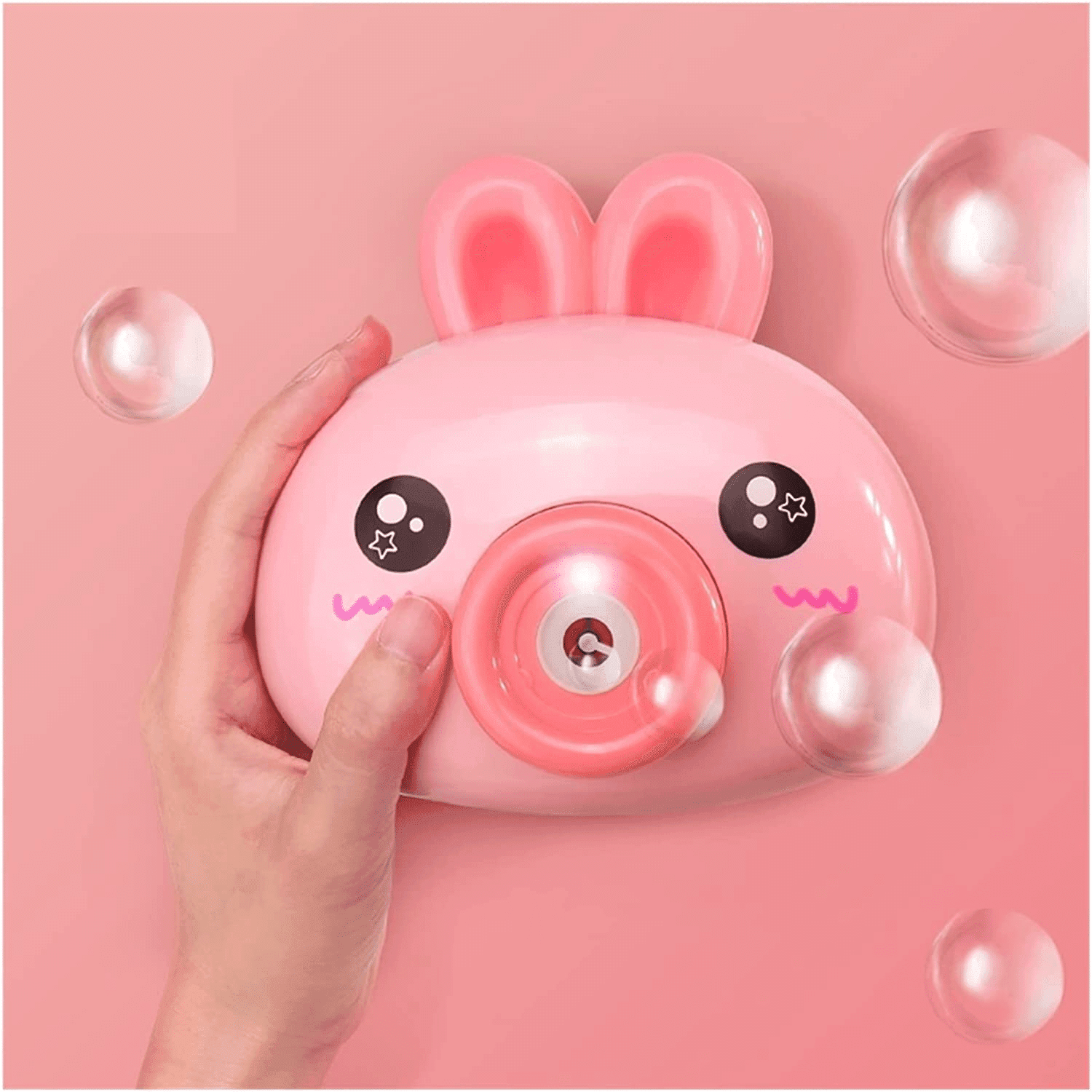 Jucarie Interactiva de Facut Baloane de Sapun, Aparat Foto cu Lumini si Sunete, Iepuras, Roz Deschis, 16x11x7.5 cm, + 3 Ani
