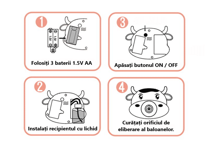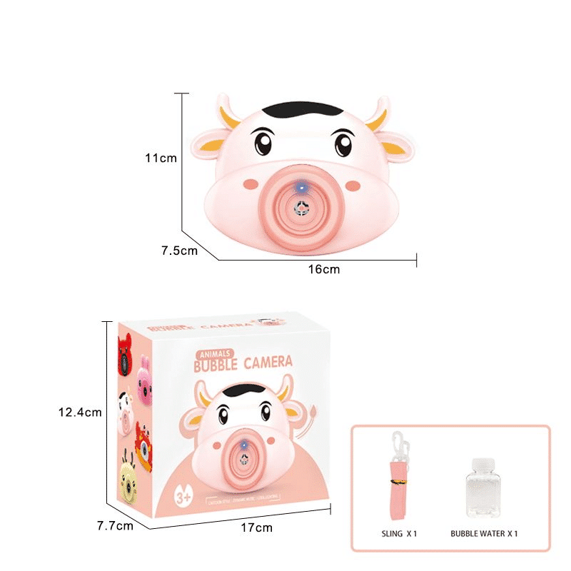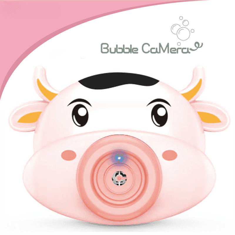1 recenzie pentru Jucarie Interactiva de Facut Baloane de Sapun, Aparat Foto cu Lumini si Sunete, Vacuta, Roz Galben, 16x11x7.5 cm, + 3 Ani