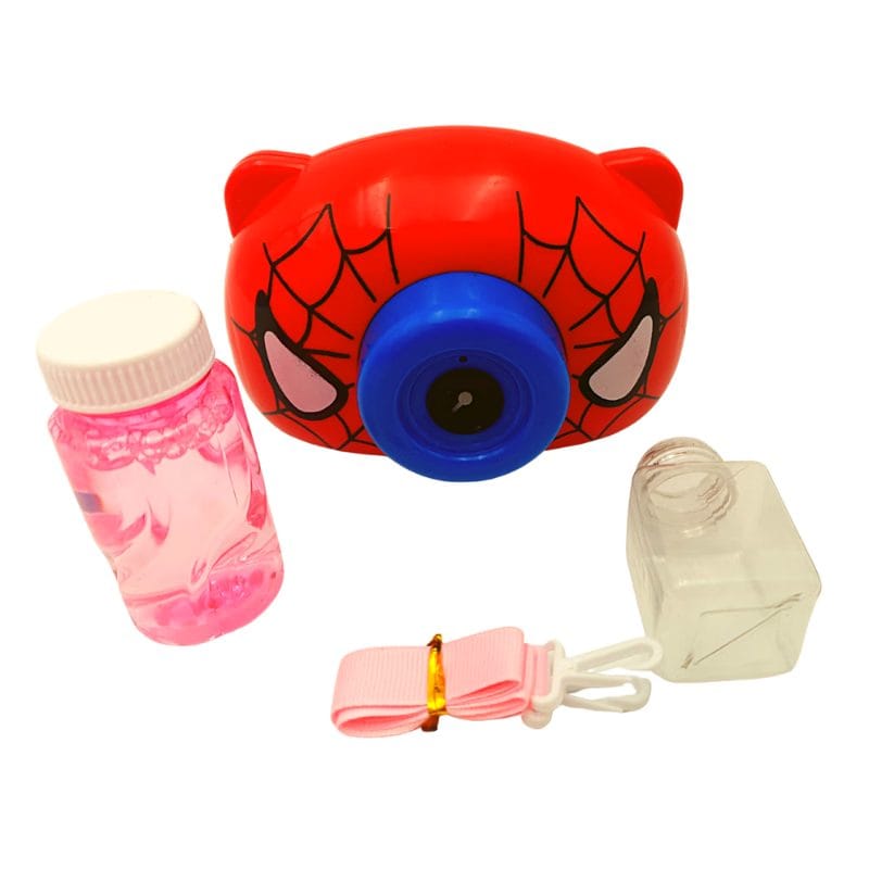 Jucarie Interactiva de Facut Baloane de Sapun, Aparat Foto cu Lumini si Sunete, Omul Paianjen, Rosu, 15x10x7 cm, + 3 Ani