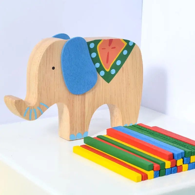 Jucarie Interactiva de Sortat si Stivuit, Elefant cu Bete de Lemn, Stimuleaza Atentia si Dexteritatea, 15x11x1.5 Cm, +3 Ani, Utility One