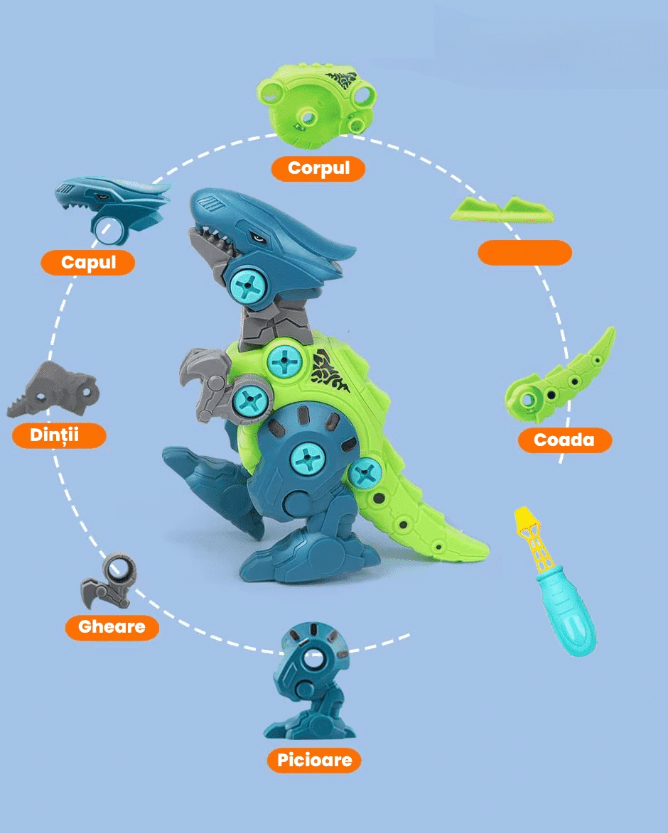 Jucarie dinozaur pentru copii, perfecta pentru asamblare cu rolul de a stimula si educa.