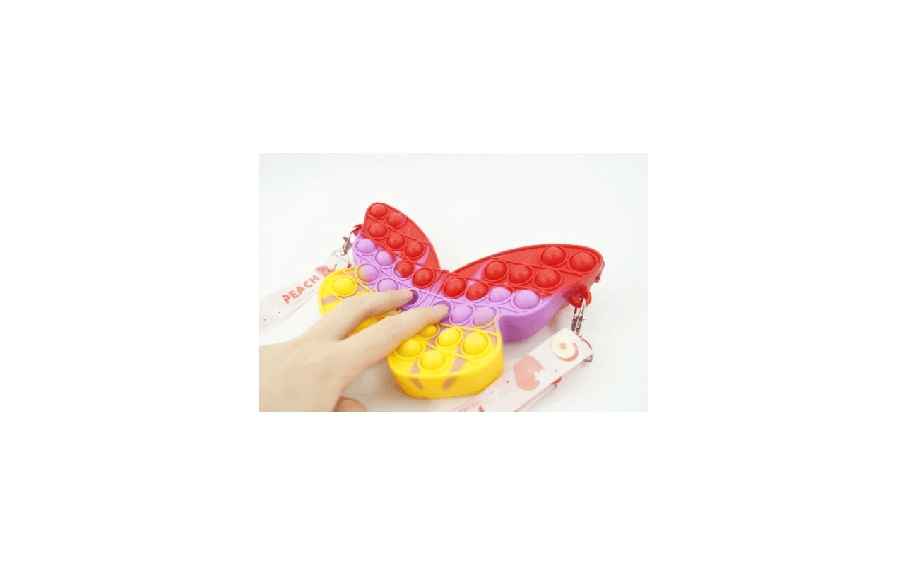 Mini geanta POP IT în formă de fluturaș, în trei culori, este accesoriul-perfect-jucărie pentru zilele pline de joacă, drumuri la grădi sau mici ieșiri în parc. Partea frontală are bule POP IT care se apasă ușor și fac un „click” discret – excelent pentru autoreglare, reducerea stresului și momente liniștite în așteptare. Forma de fluture și combinația veselă de culori o fac irezistibilă pentru copii, iar dimensiunea compactă este potrivită pentru „comorile” de zi cu zi: elastice de păr, șervețele, balsam de buze, mărunțiș sau o mini-figurina preferată.