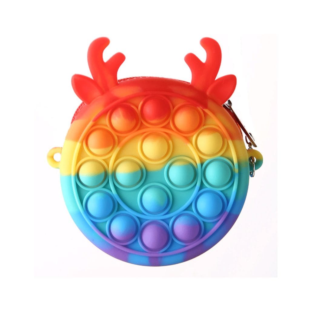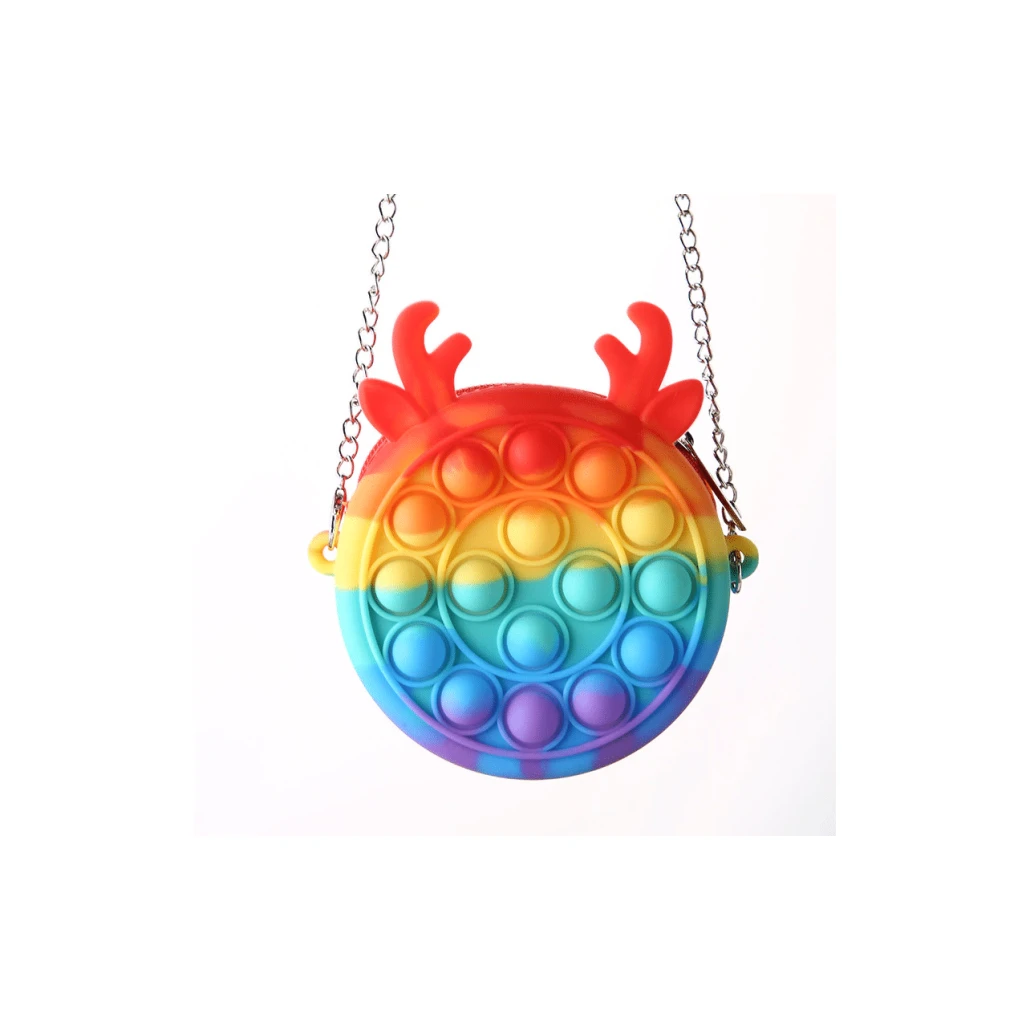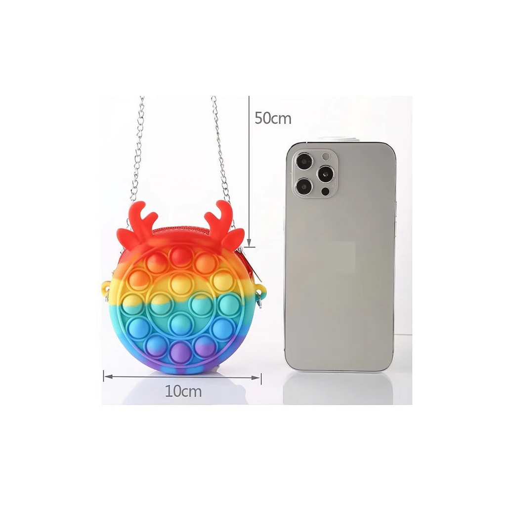 Mini Geanta de mana Pop It Diametru 10 cm – cu urechi si cornite de ren.