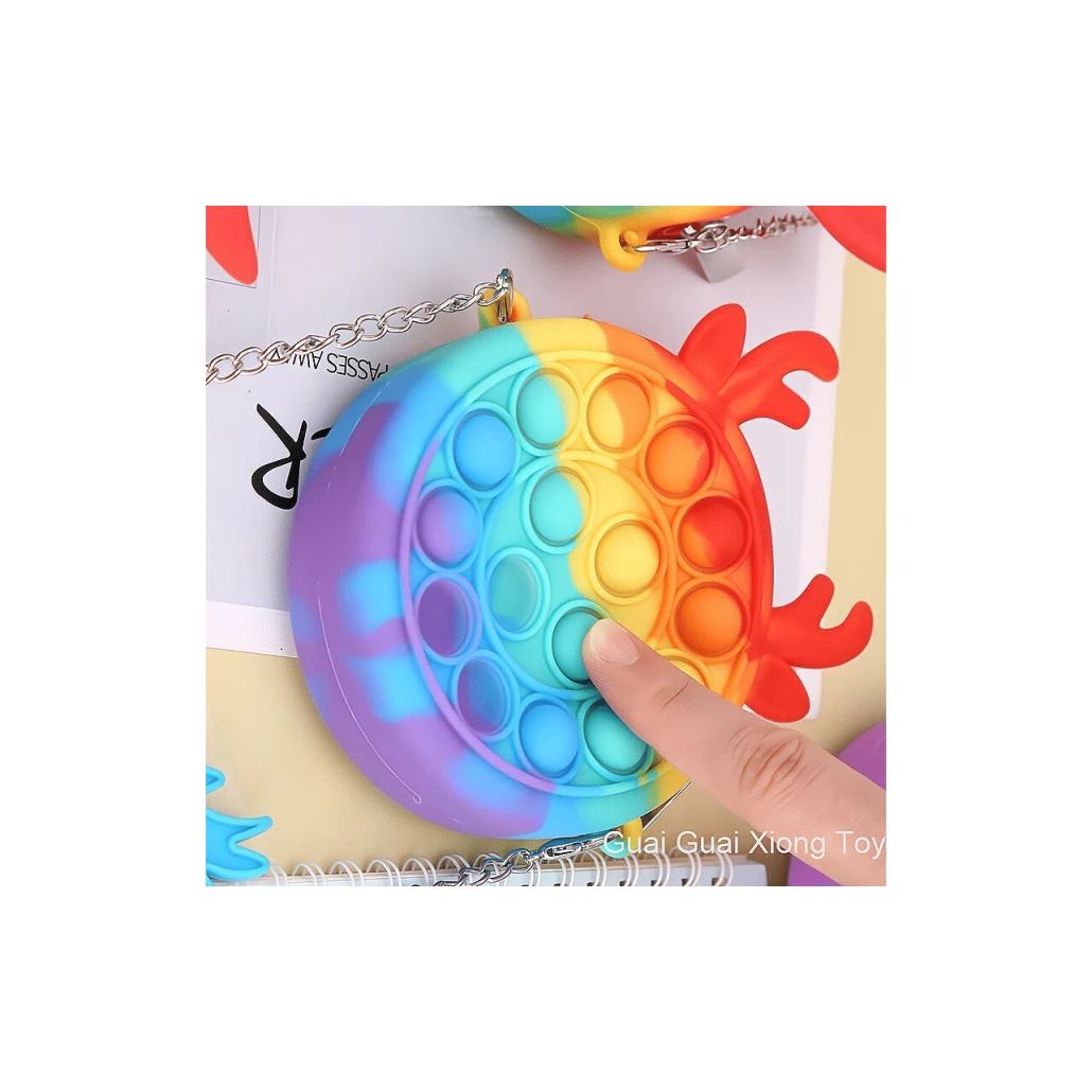 Avantajul care diferentiaza aceasta jucarie fata de de celelalte Pop It-uri este acela ca o poti folosi pe post de accesoriu si functioneaza ideal pentru a cara diverse obiecte !