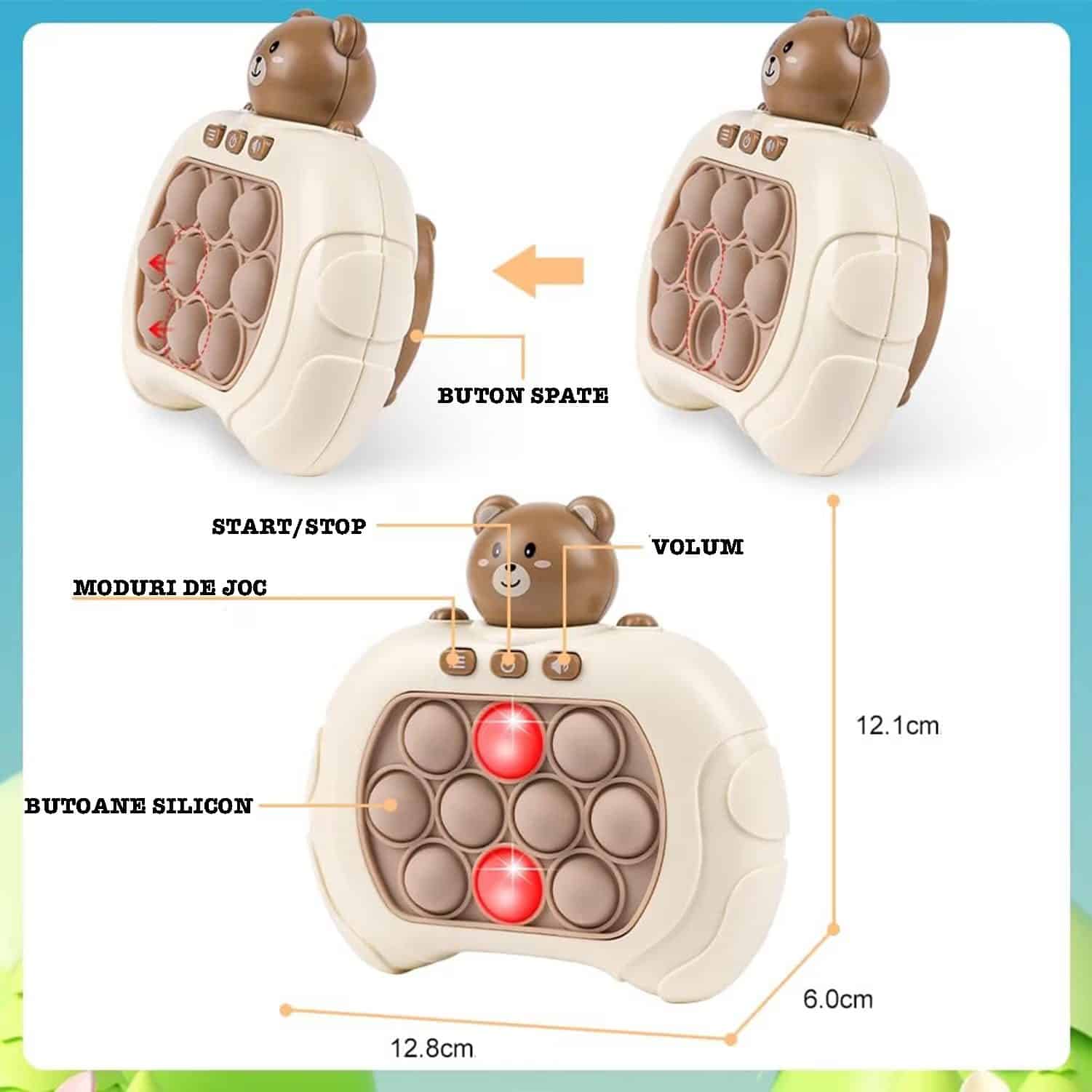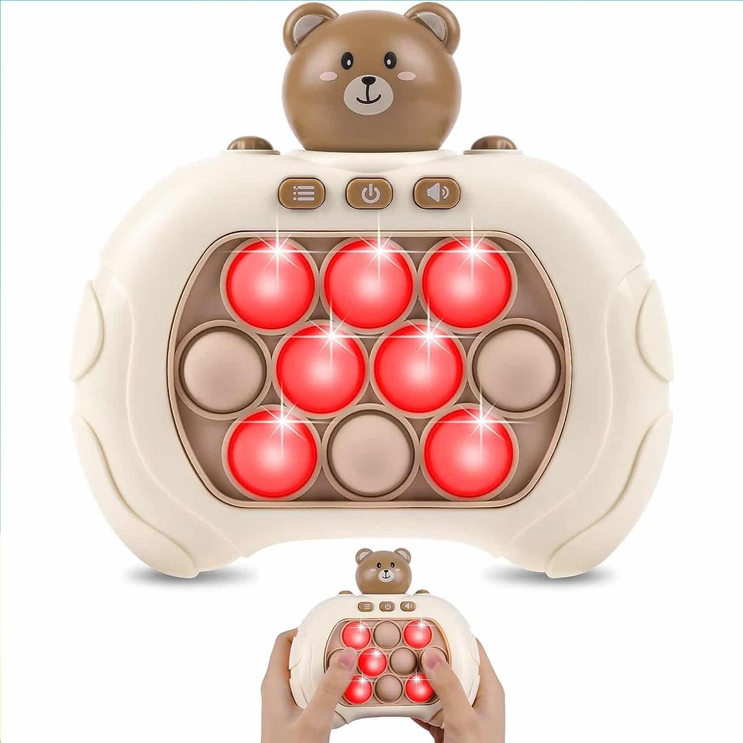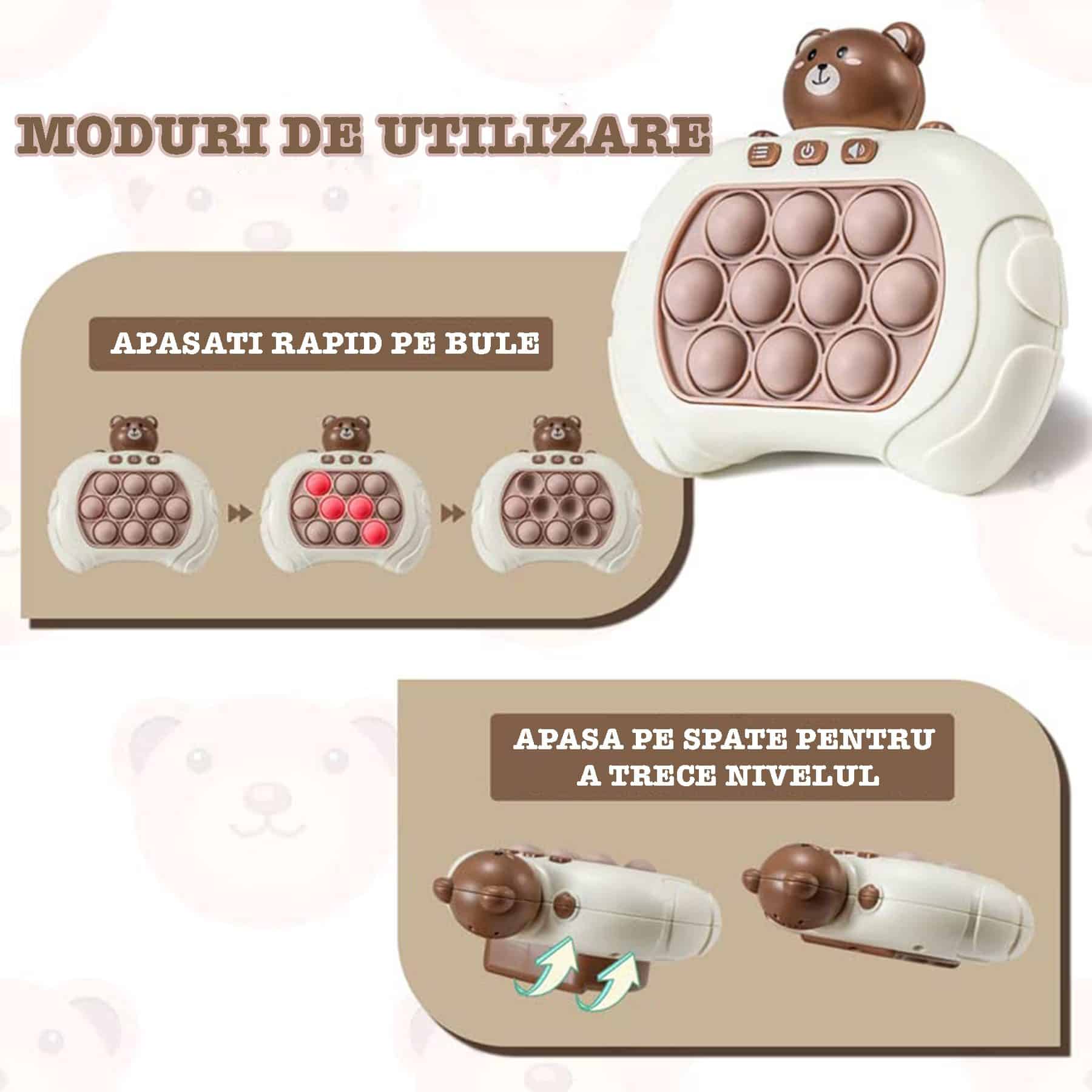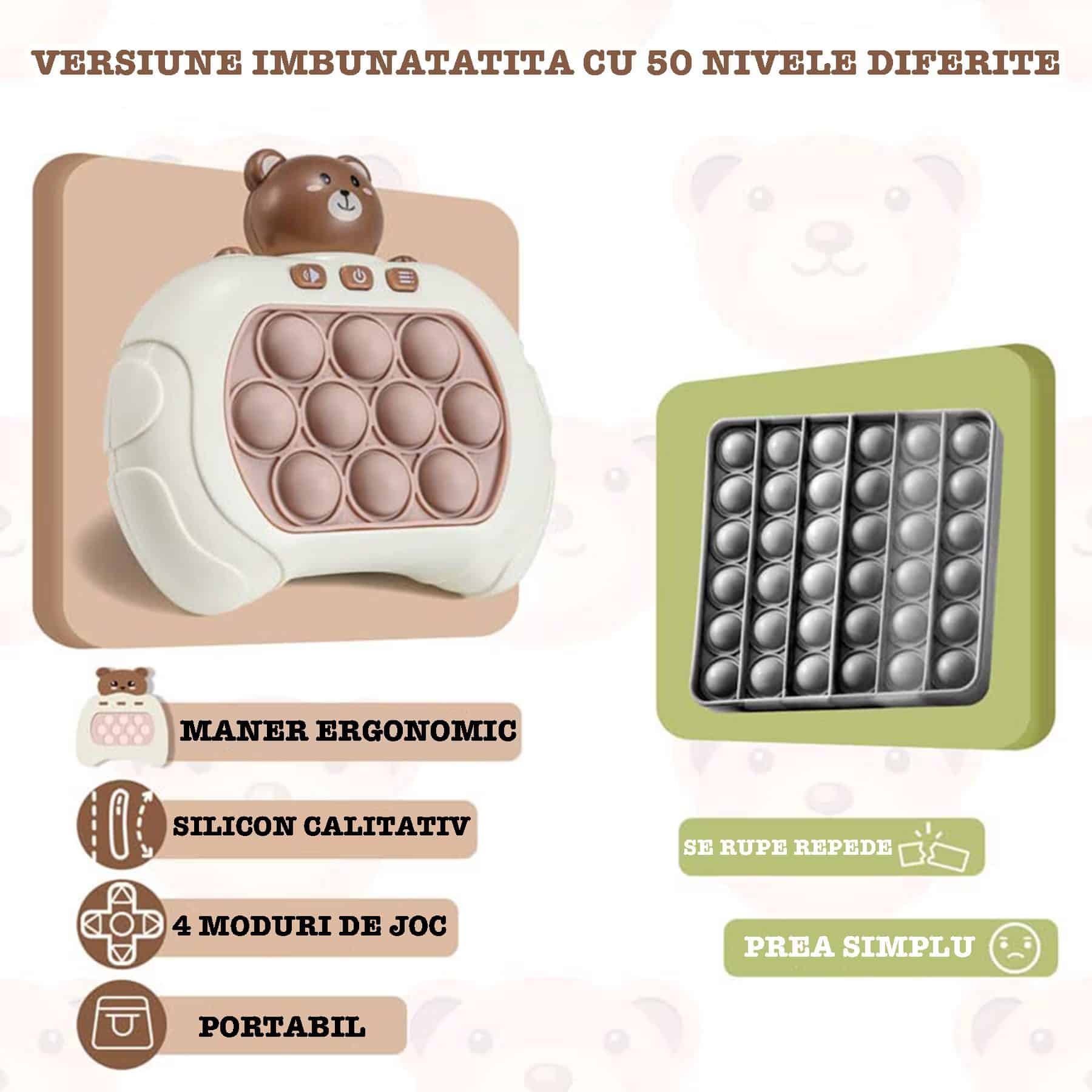 Jucarie Pop It Electronica Utility One, 200 de Nivele Diferite, Ursulet, Antistres, Senzoriala, Jucatori Multipli, Lumini si Sunet, 12.7 x 12 x 6 cm, Maro, + 3 Ani
