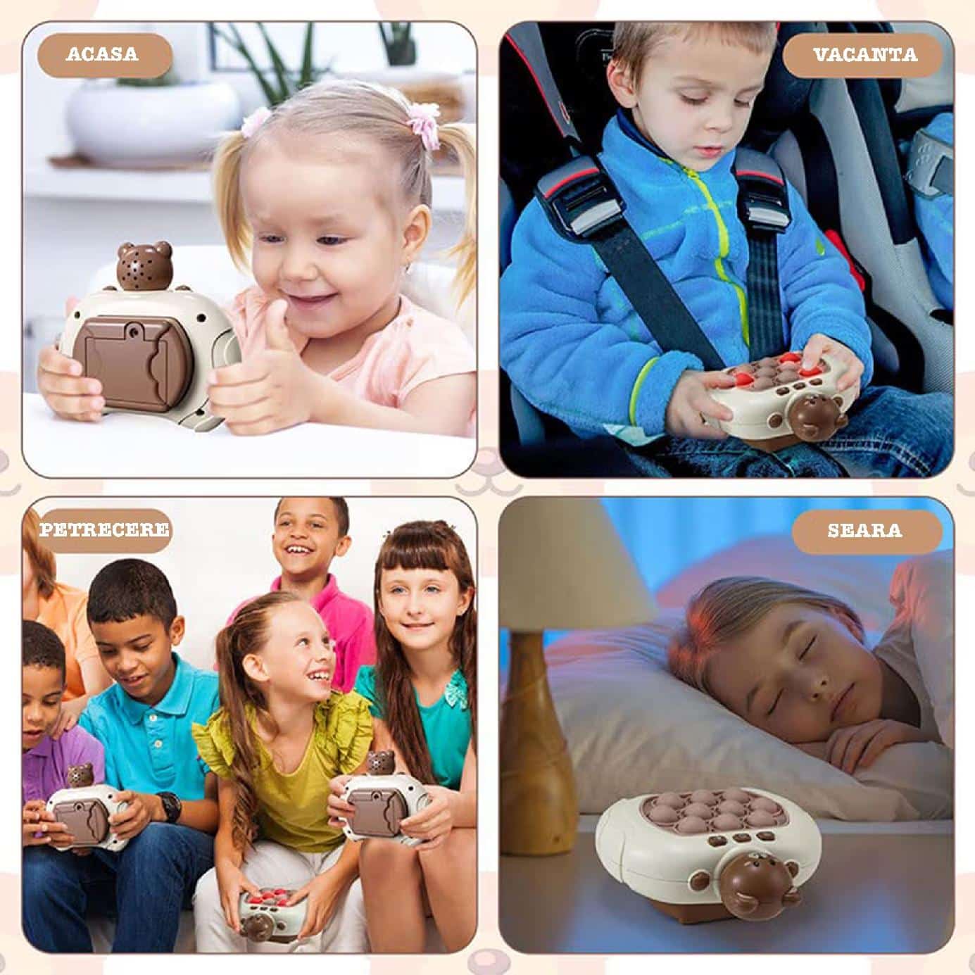 MULTE MODURI DE JUCARE: Jucariile Pop-it adauga mai multa distractie pentru copii prin cele 4 moduri de joc interesante.