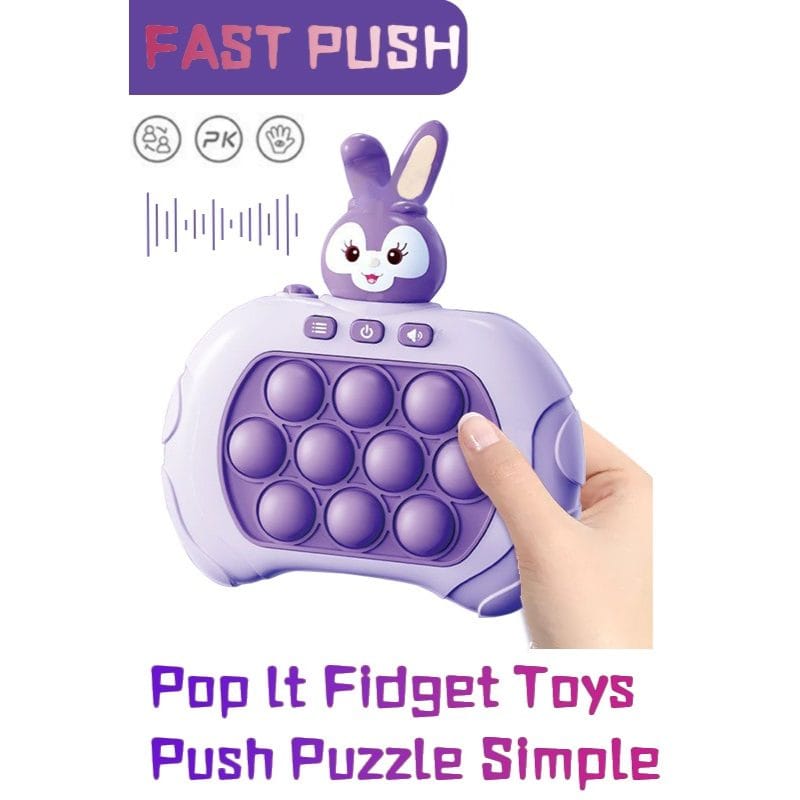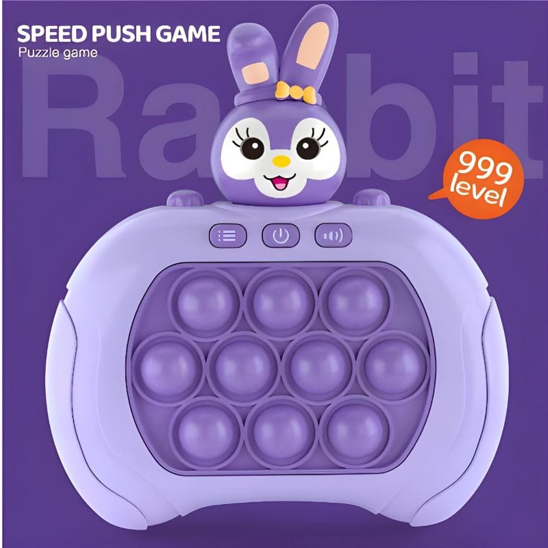 Jucarie Pop It Electronica, 999 de Nivele Diferite, Iepuras, Antistres, Senzoriala, Jucatori Multipli, Lumini si Sunet, 12.7 x 12 x 6 cm, Mov Deschis, + 3 Ani