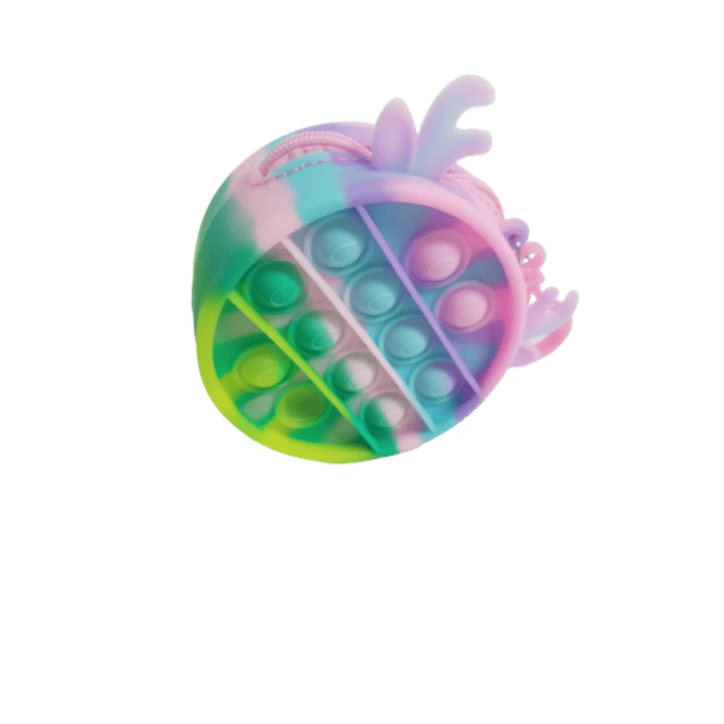 Mini Portofel de mana Pop It Diametru 9 cm – cu urechi si cornite de ren.