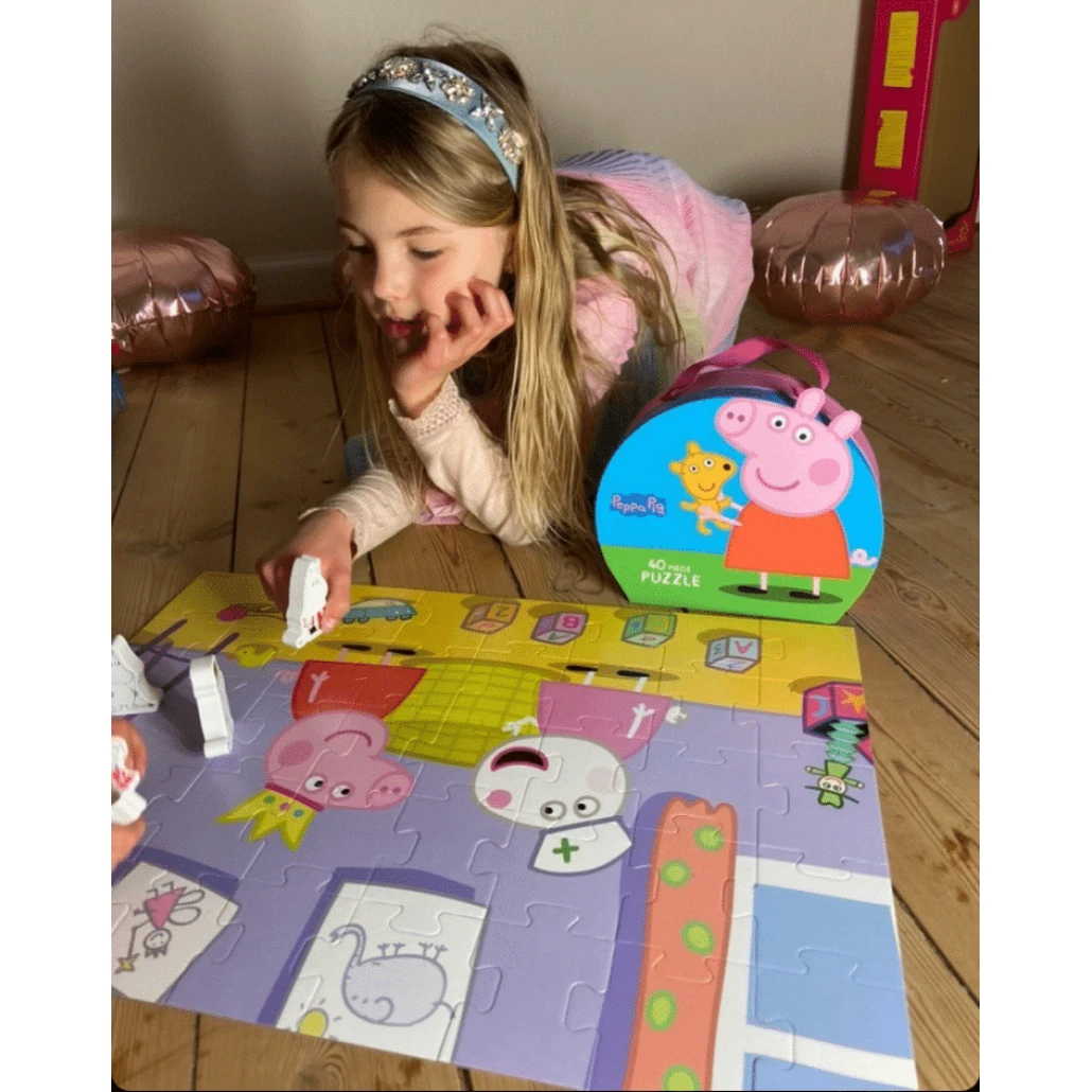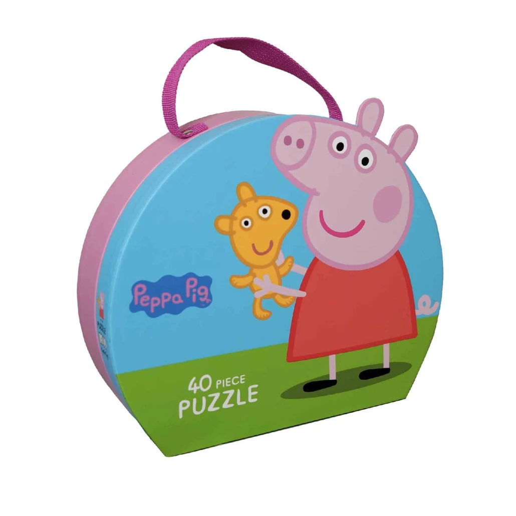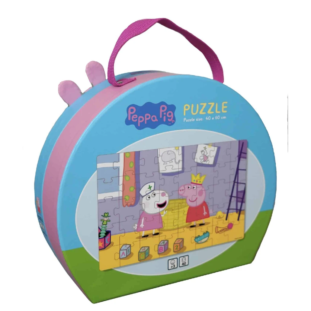 Produsul contine valiza decorativa mica si frumoasa, cu Peppa Pig. In interiorul valizei vei gasi un puzzle frumos cu piese mari.