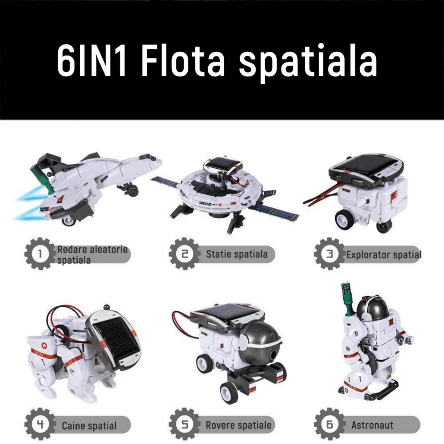 Kit Construcție Robot Solar 6 în 1, Jucărie STEM Spațială, Set Educativ cu Alimentare Solară și Baterii, Copii 8-12 Ani
