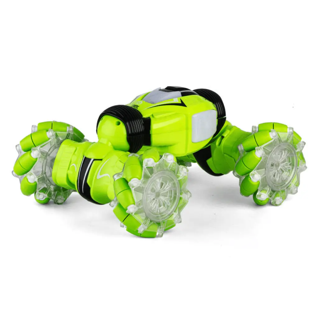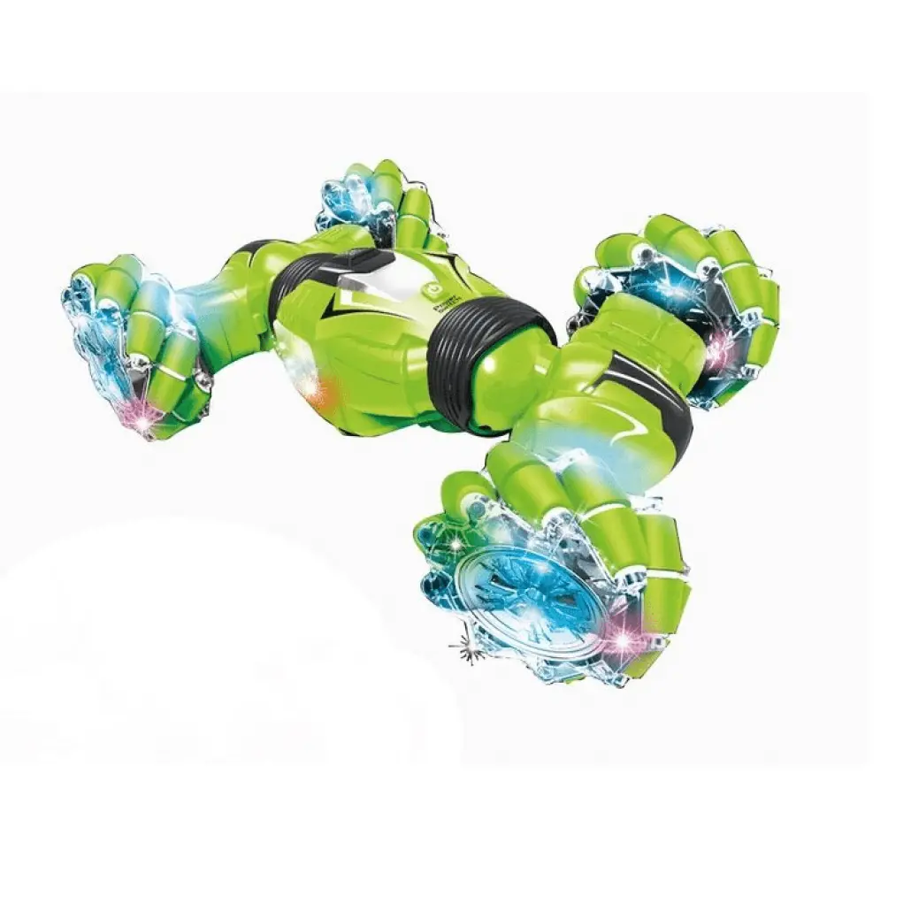 Masinuta de Cascadorii cu 2 Telecomenzi, Comanda Senzoriala prin Gesturi, 2.4 Ghz, Tractiune 4x4, Rotire 360 Grade, Lumini si Sunete Interactive, Flexibila, 1:12, Acumulator, Verde, 32x20x9 cm, + 6 Ani, Utility One