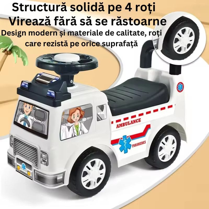 Mașinuța Ride-On Ambulanță LUDIRO – Distracție Activă și Joc Imaginativ pentru Copii