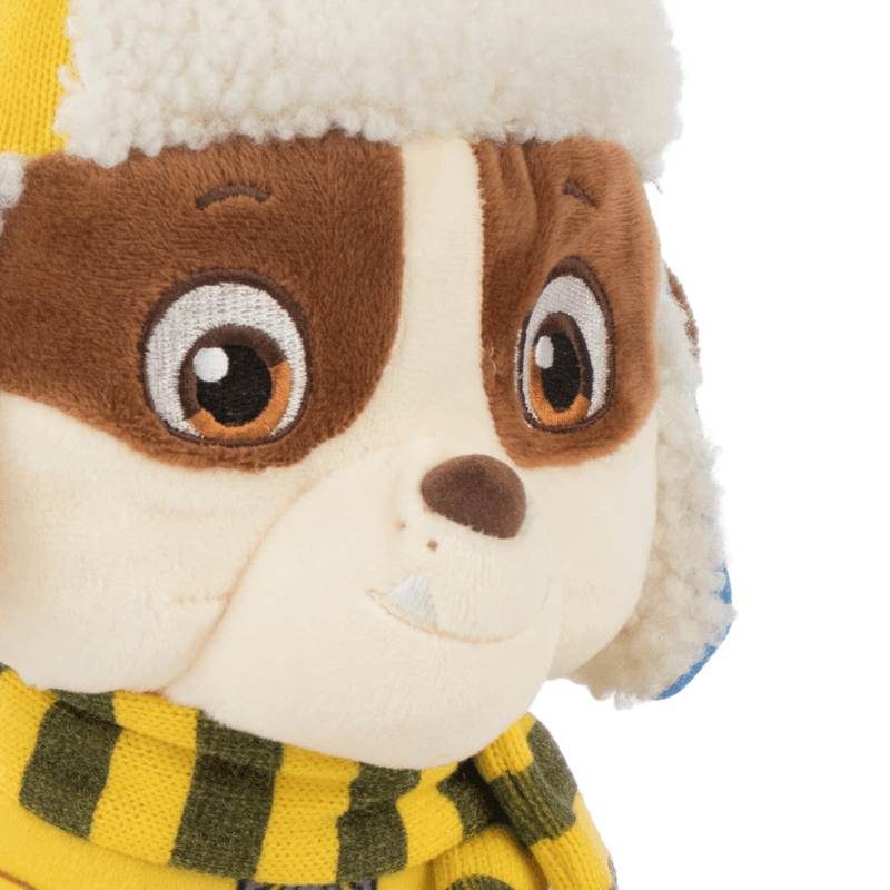 Acum, el vine într-o versiune specială și adorabilă: Rubble de pluș 27 cm, îmbrăcat în hăinuțe de iarnă.