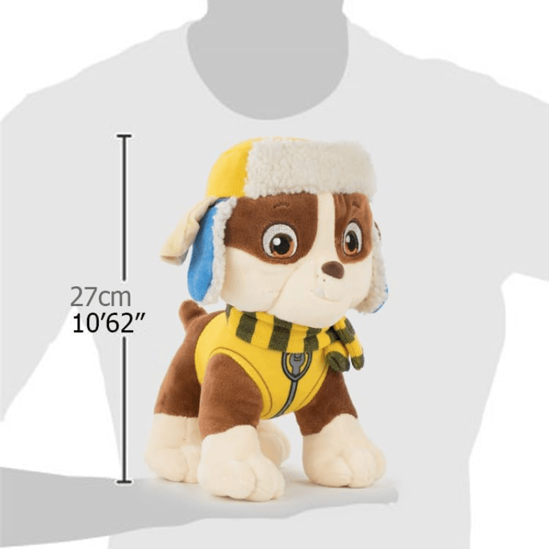 Paw Patrol Rubble de Pluș 27 cm in Hainute de Iarna, Jucărie Moale și Plină de Aventură pentru Copii