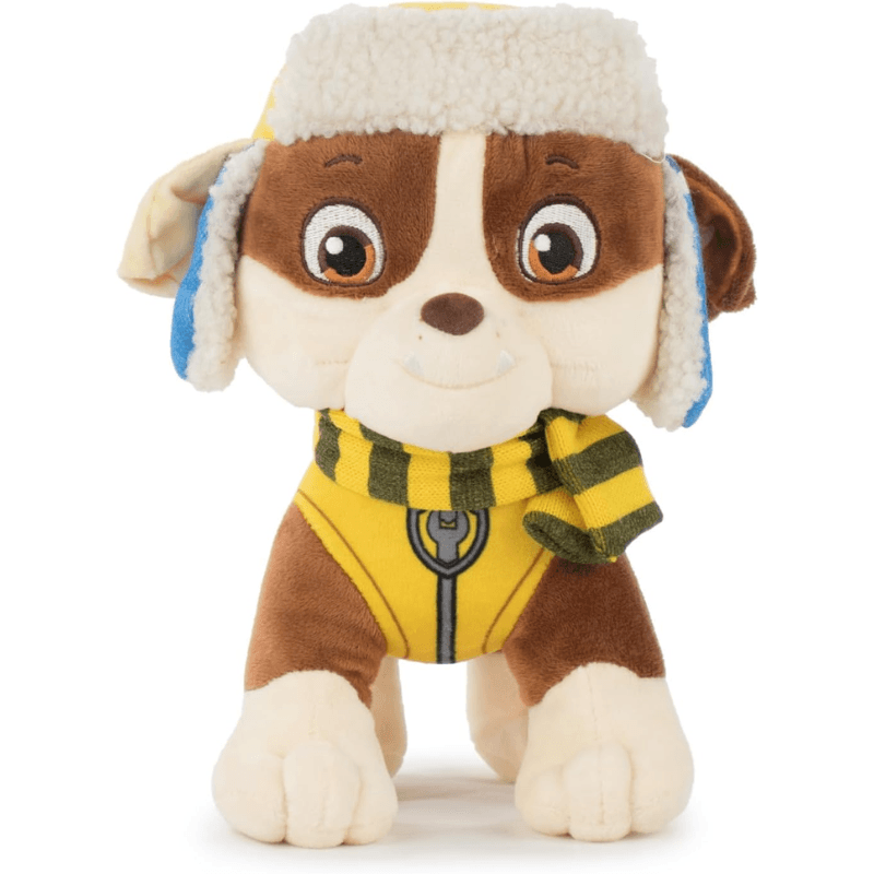 Paw Patrol Rubble de pluș 27 cm – ediția de iarnă este jucăria perfectă pentru zilele friguroase,