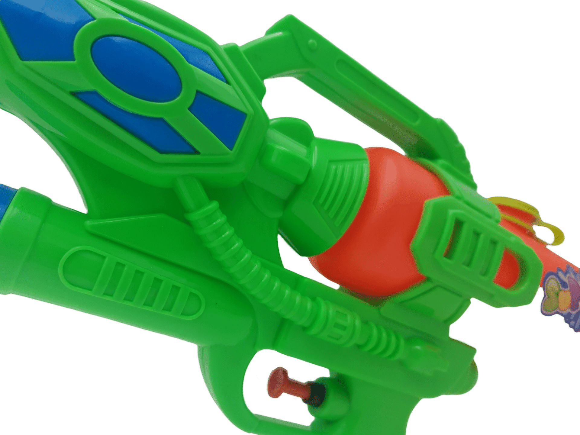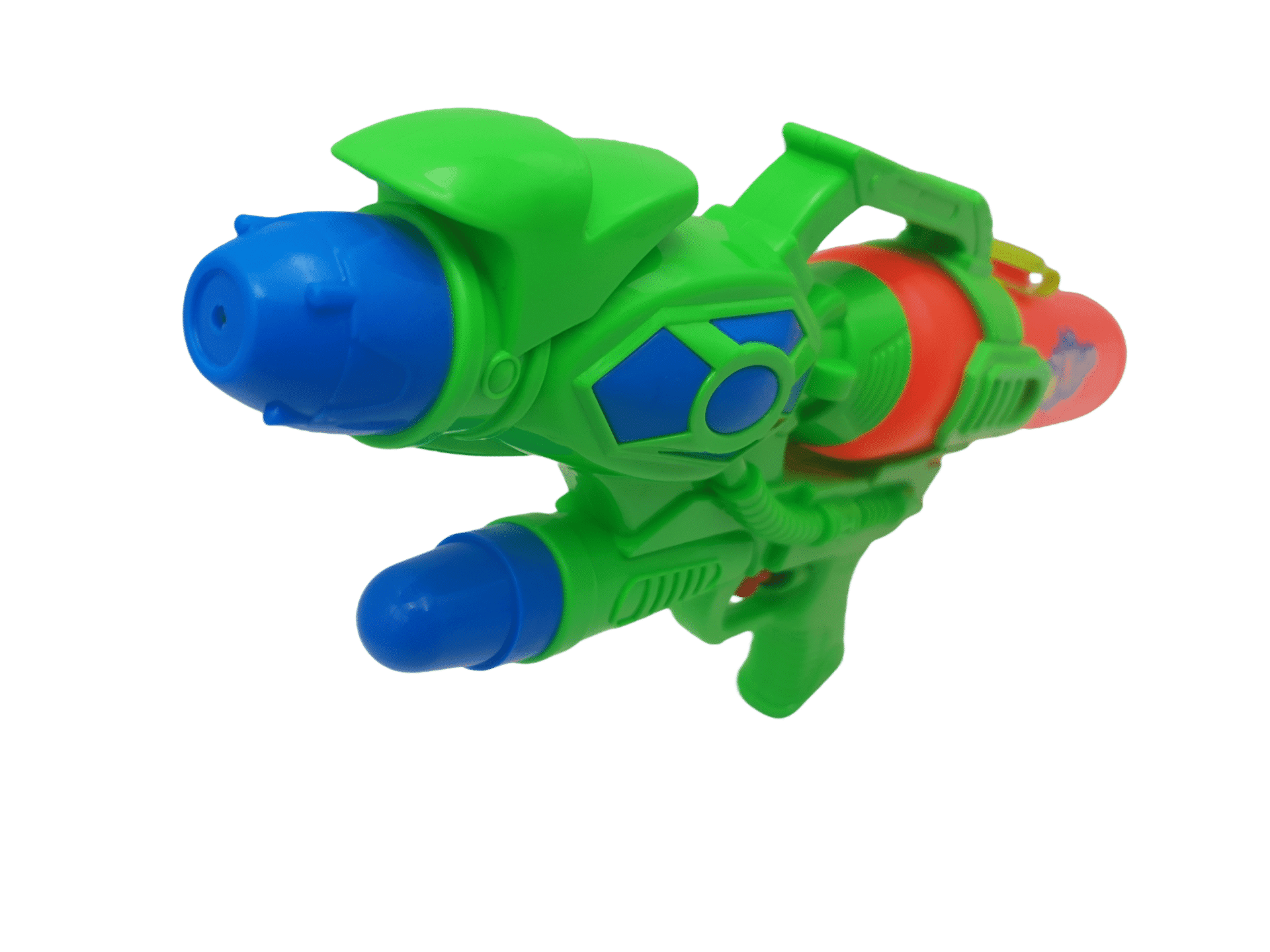 Capacitatea marea rezervorului, de peste 500 ml de apa, permite lansarea prin pompare sub forma unui jet la o distanta de peste 5 metri. Nimic nu uda si racoreste mai eficient decat aceasta pusca de jucarie.