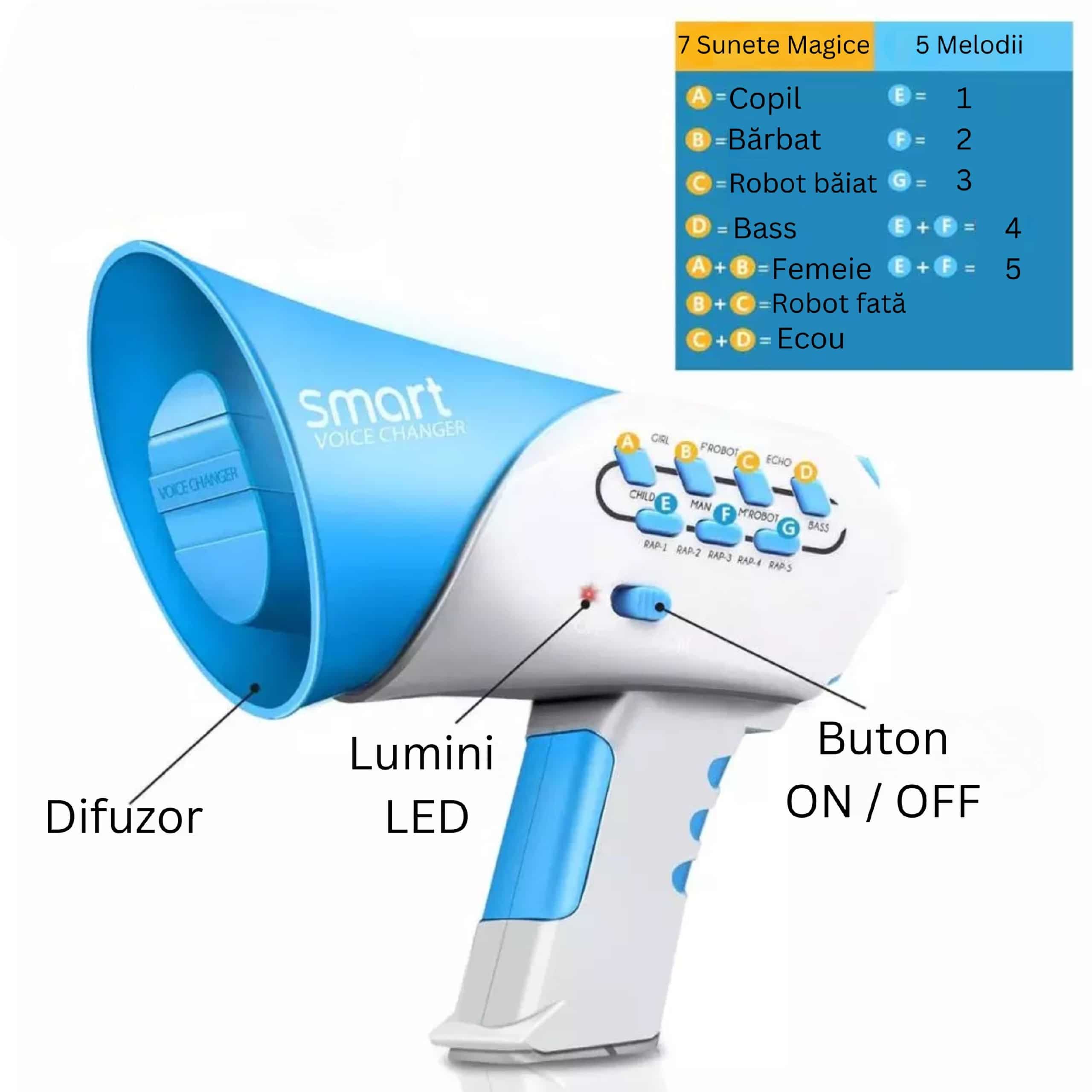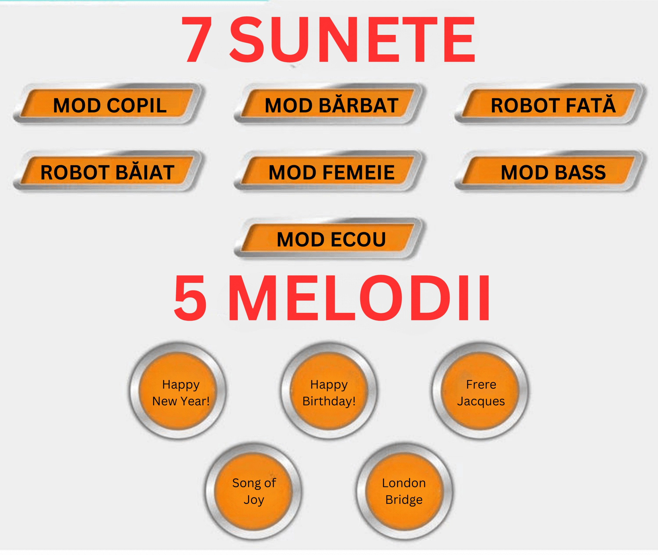 DISTRACȚIE NELIMITATĂ DE SCHIMBARE A VOCEI - Portavocea este proiectata cu trei stiluri cu 7 moduri, stil băiat, fată și robot, puteți alege orice mod pe care doriți să il comutați .