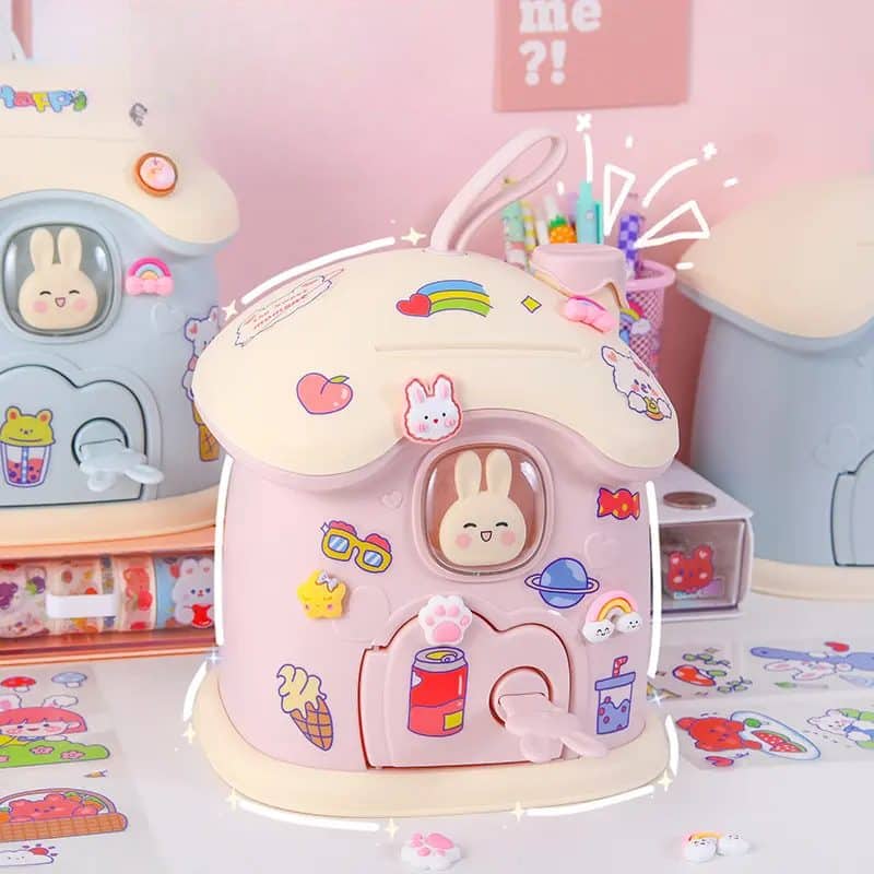 Pusculita pentru Copii cu Cheie, Stickere de Personalizare Incluse, Iepuras, Forma Ciuperca, 20x18x15 Cm, Roz, + 3 Ani, Utility One