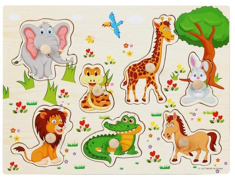 Caracteristici Puzzle animale salbatice din lemn cu maner ajutator: