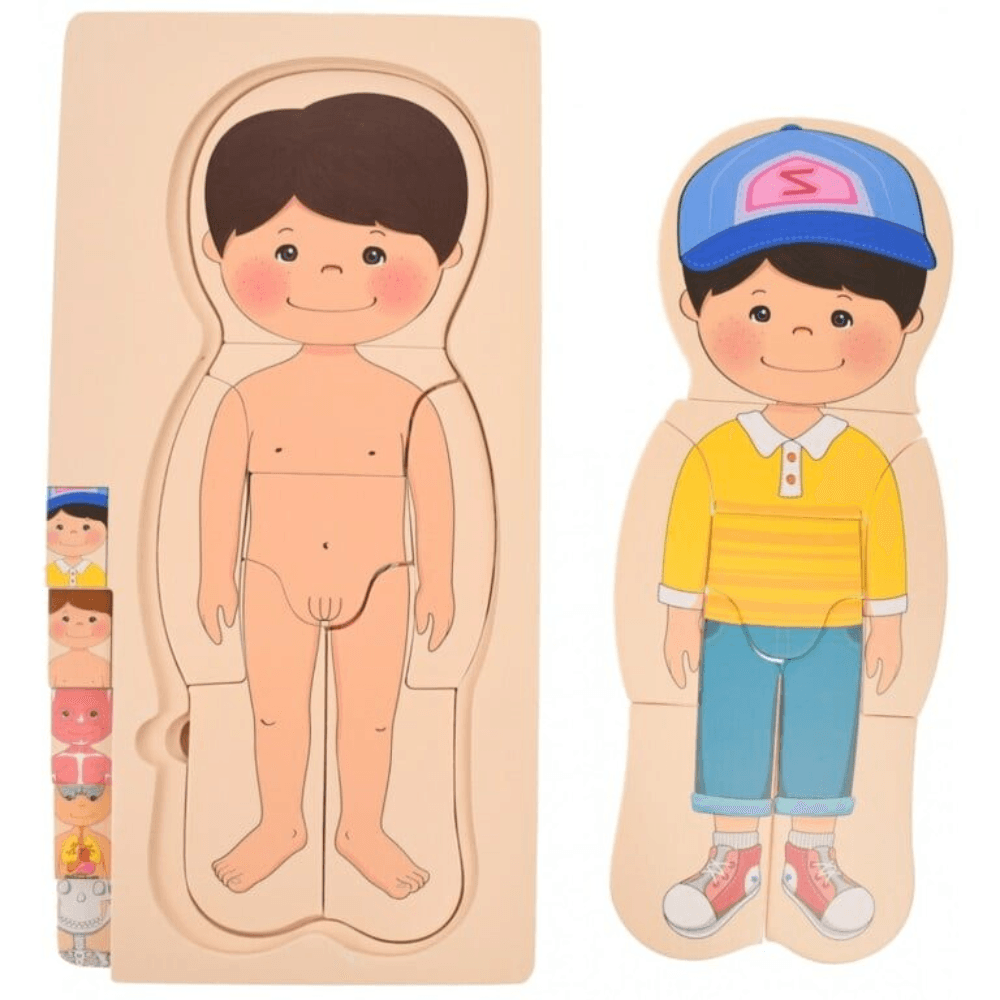 Home Varsta 3-4 Ani Puzzle Corpul Uman – Baiat, 5 Straturi, 28 Piese din Lemn, 3+ Ani